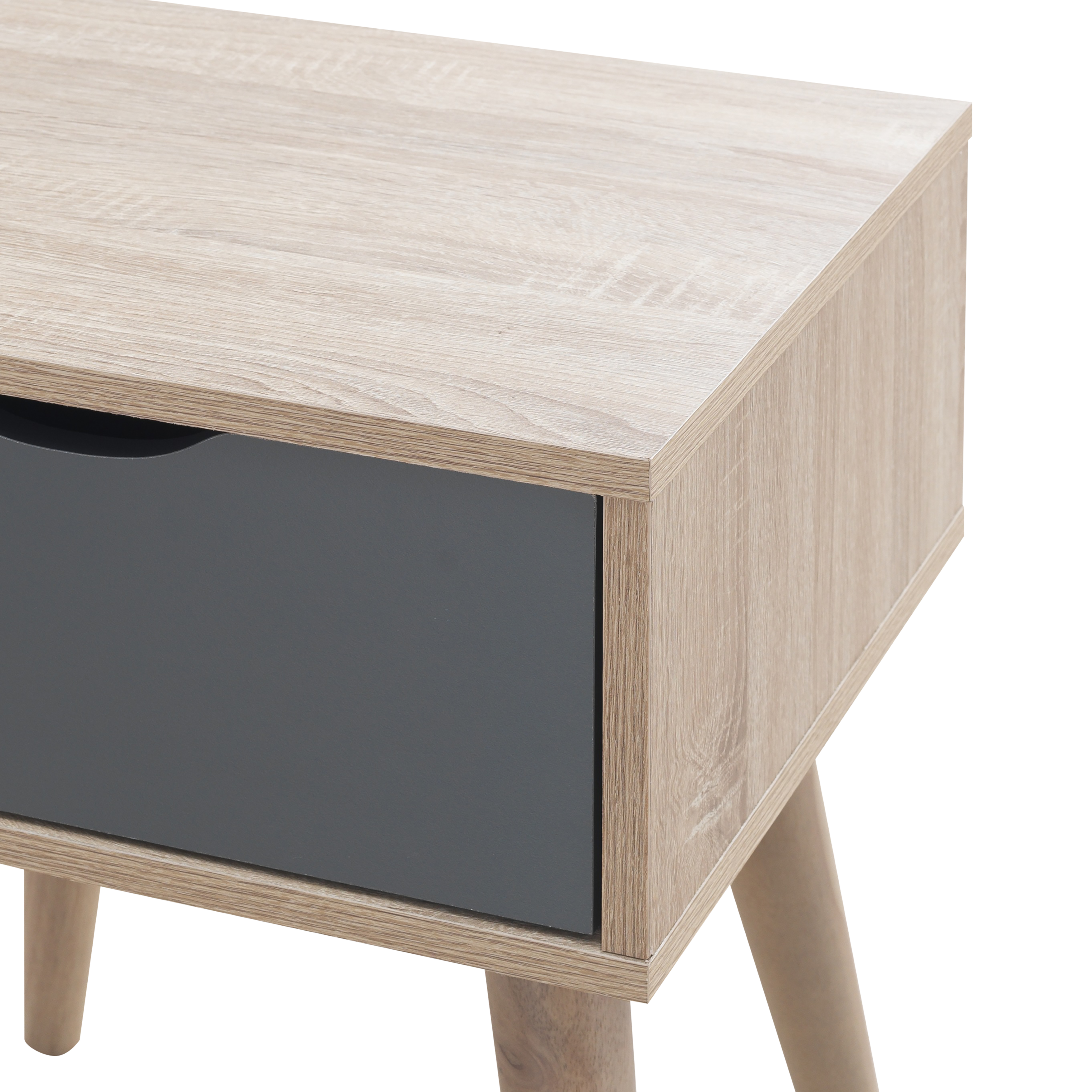 The table features a Sonoma Oak wood effect frame complemented by a dark grey drawer front, creating a contemporary and grounded look that fits seamlessly into modern interiors.