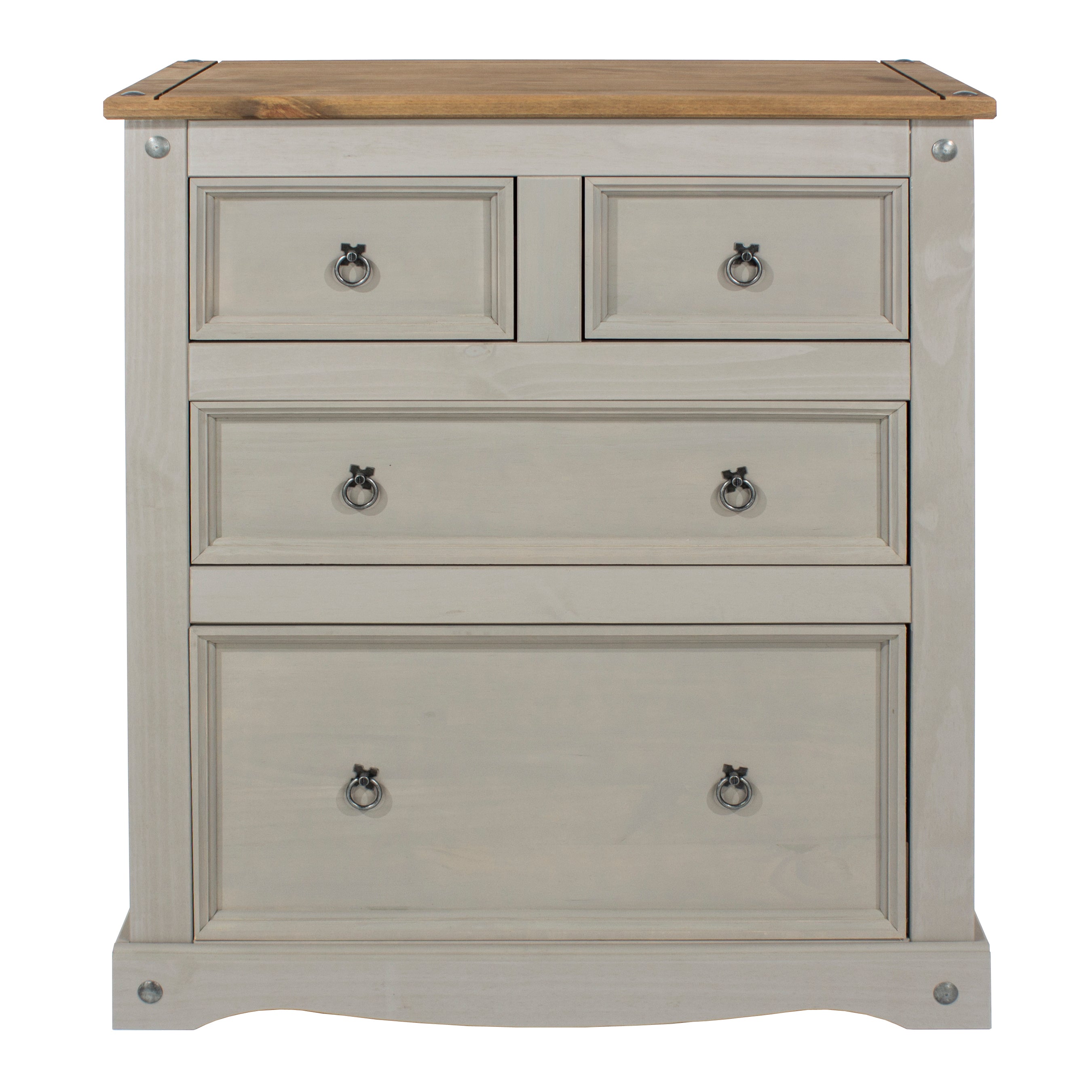 This useful 3 drawer chest offers generous storage with a combination of drawer sizes, finished in an antique wax with black metal hardware.