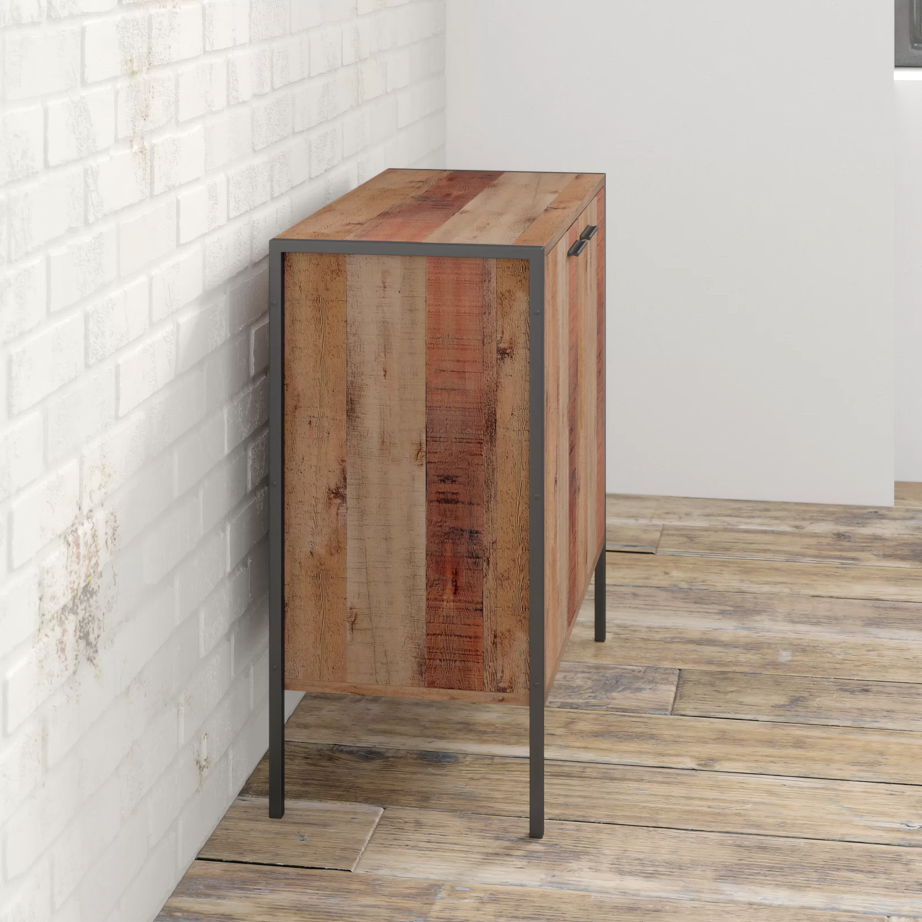Add a warm, rustic industrial touch to your home with this versatile Rustic Oak Sideboard Cabinet Unit. Available in two practical configurations to suit your storage needs: a larger unit featuring 2 doors and 3 drawers, and a compact model with 2 doors. Both designs showcase a distressed oak effect finish paired with a sturdy black metal frame, blending seamlessly with various interiors while providing ample storage.