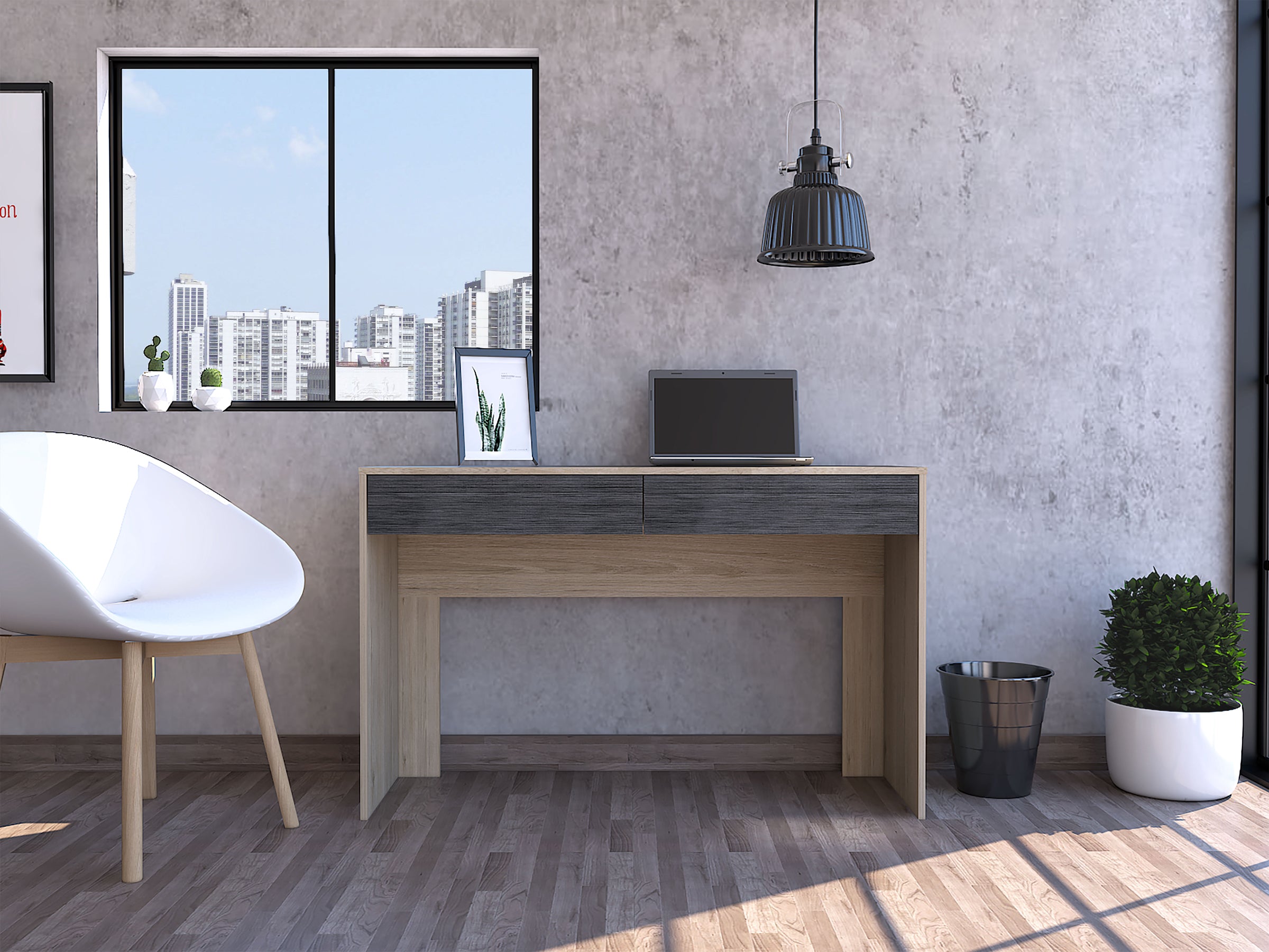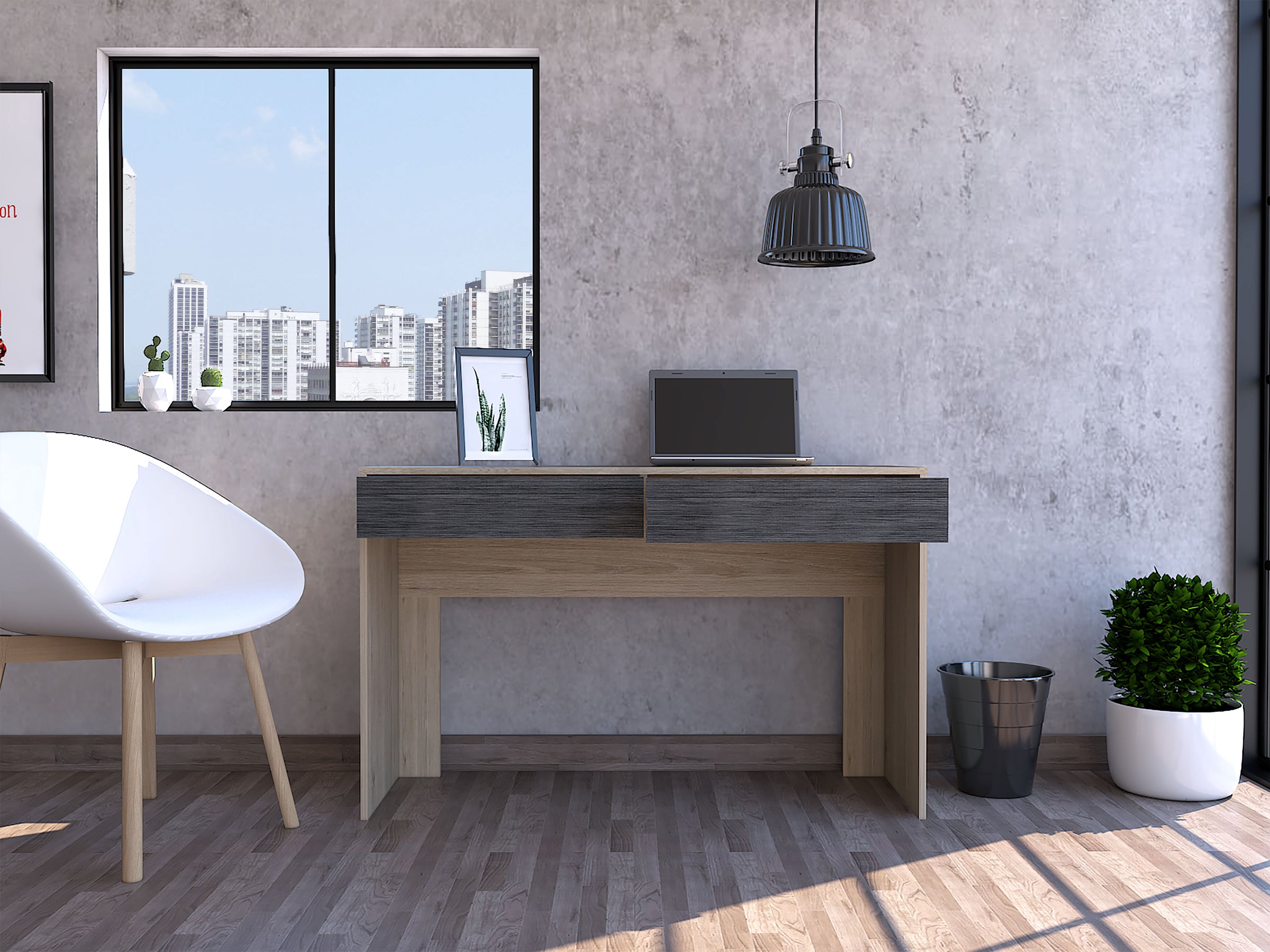 Ideal for working at home, this stylish Harvard desk offers plenty of work surface and two handy drawers for storage. Finished in an easy to clean, hardwearing washed oak and carbon grey oak effect melamine with real metal hardware, it combines practicality with modern design.