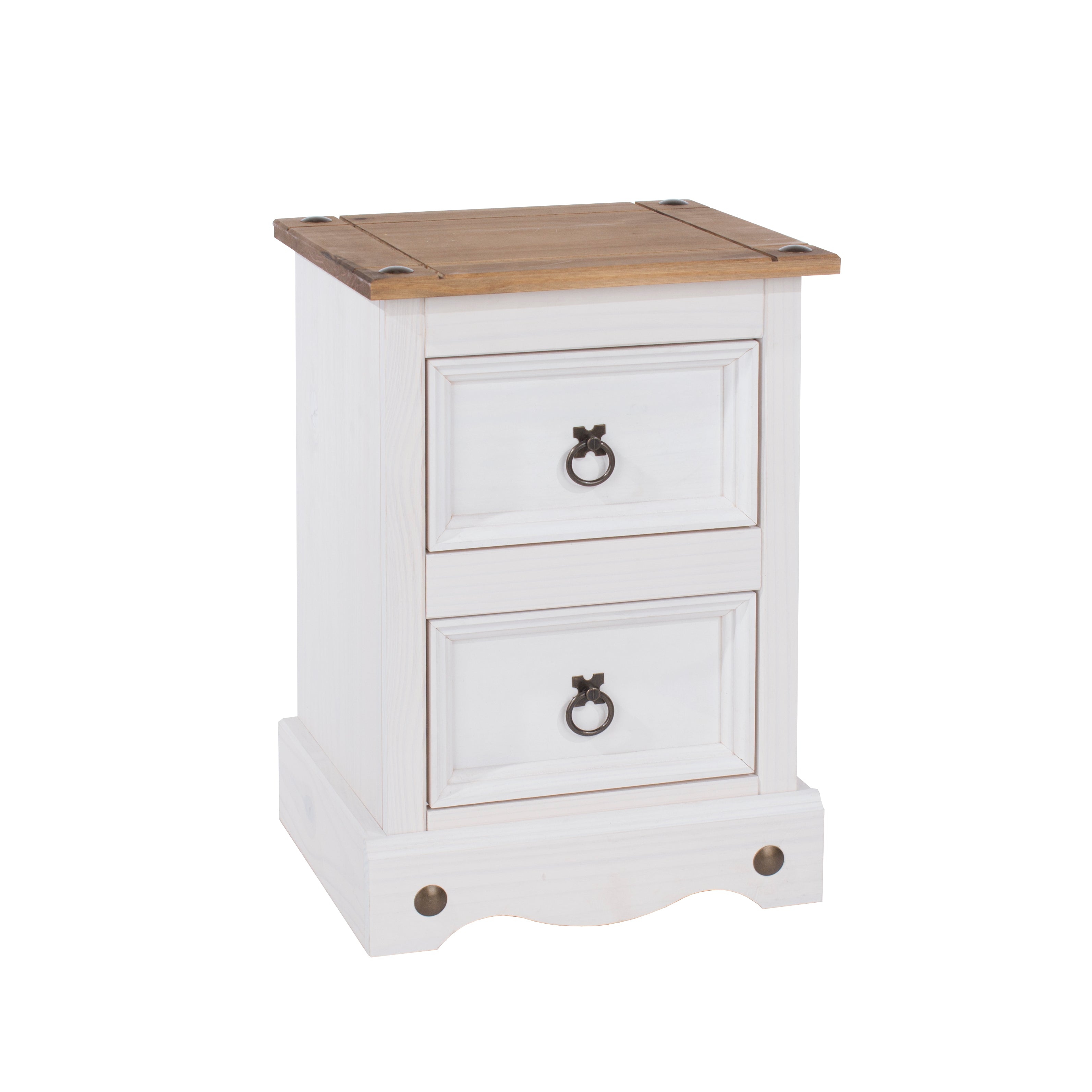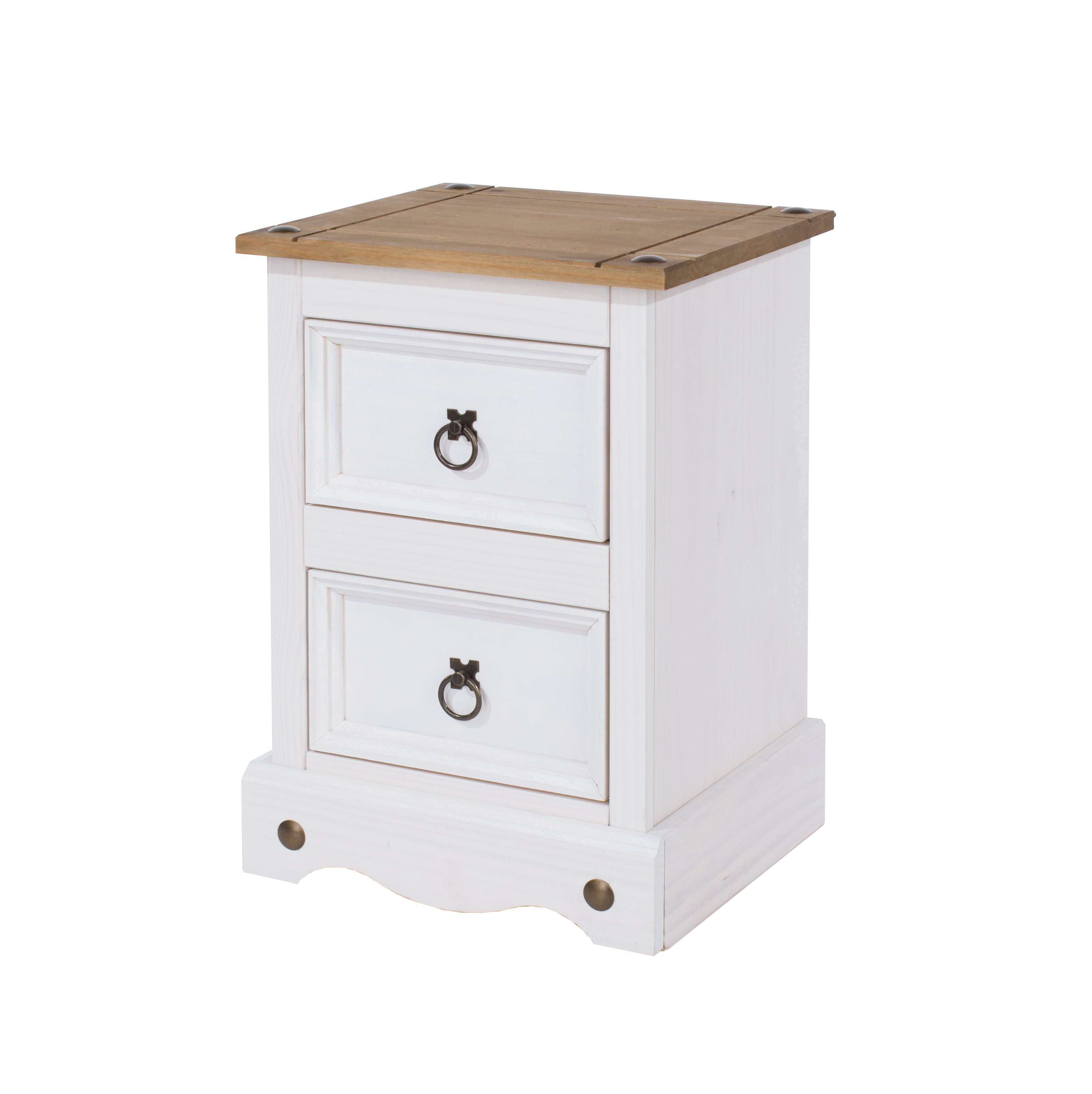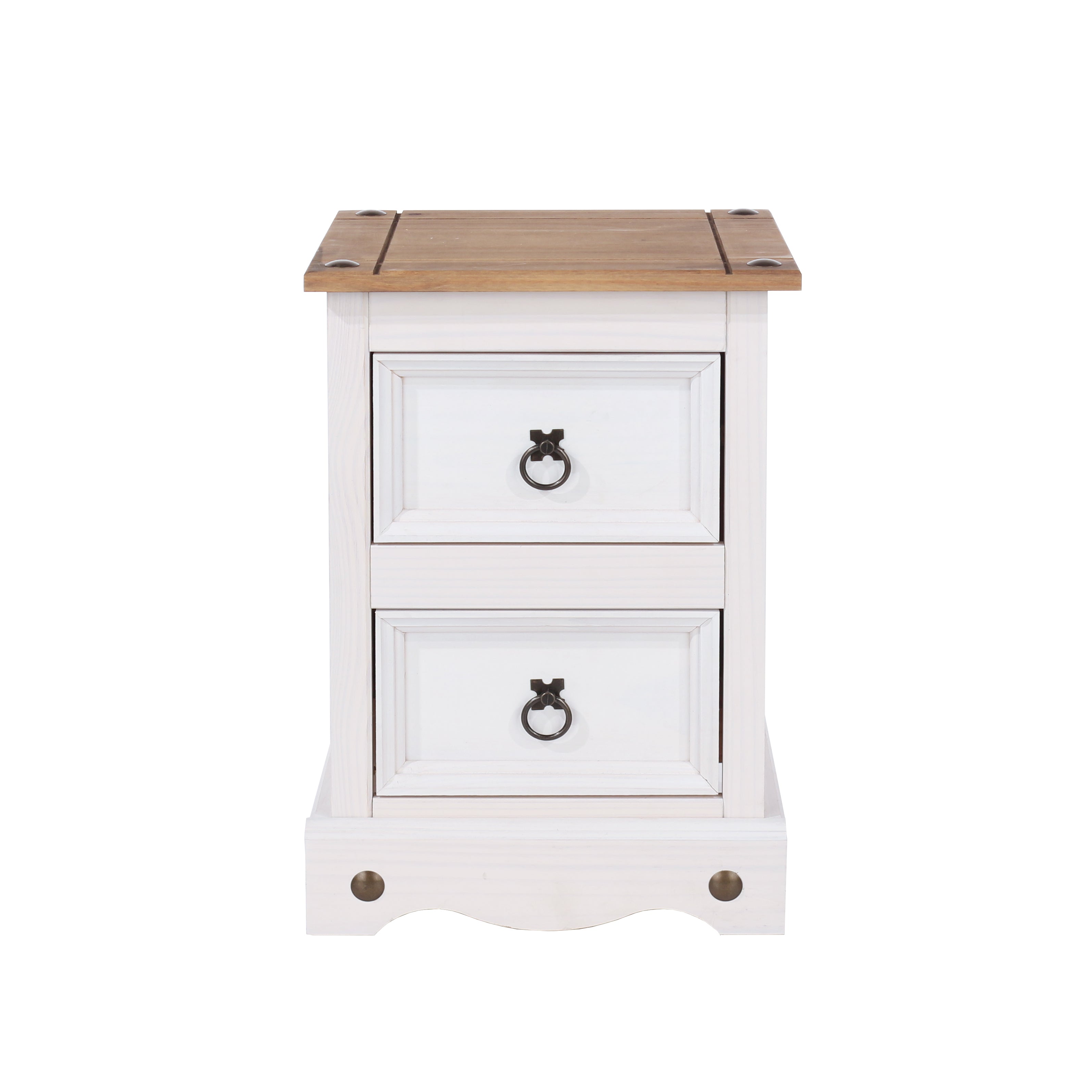 This petite bedside cabinet is ideal for small rooms, featuring two drawers with soft mouldings, metal hardware and a charming antique wax finish.