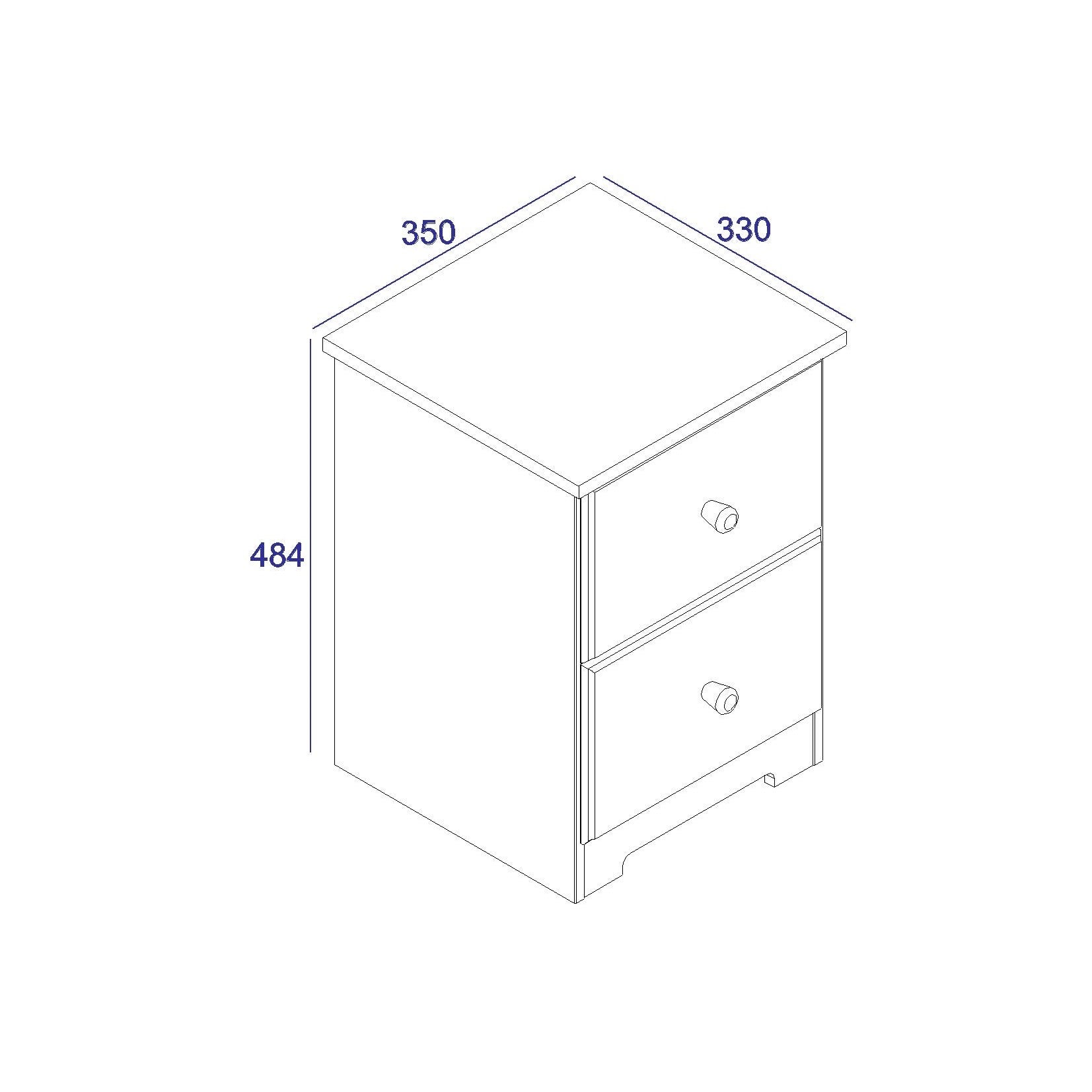 Our 2 drawer petite bedside combines an Oak woodgrain effect easy to clean top with soft white paint finished cabinet and complimenting wood handles, offering a modern compact style perfect for any bedroom.