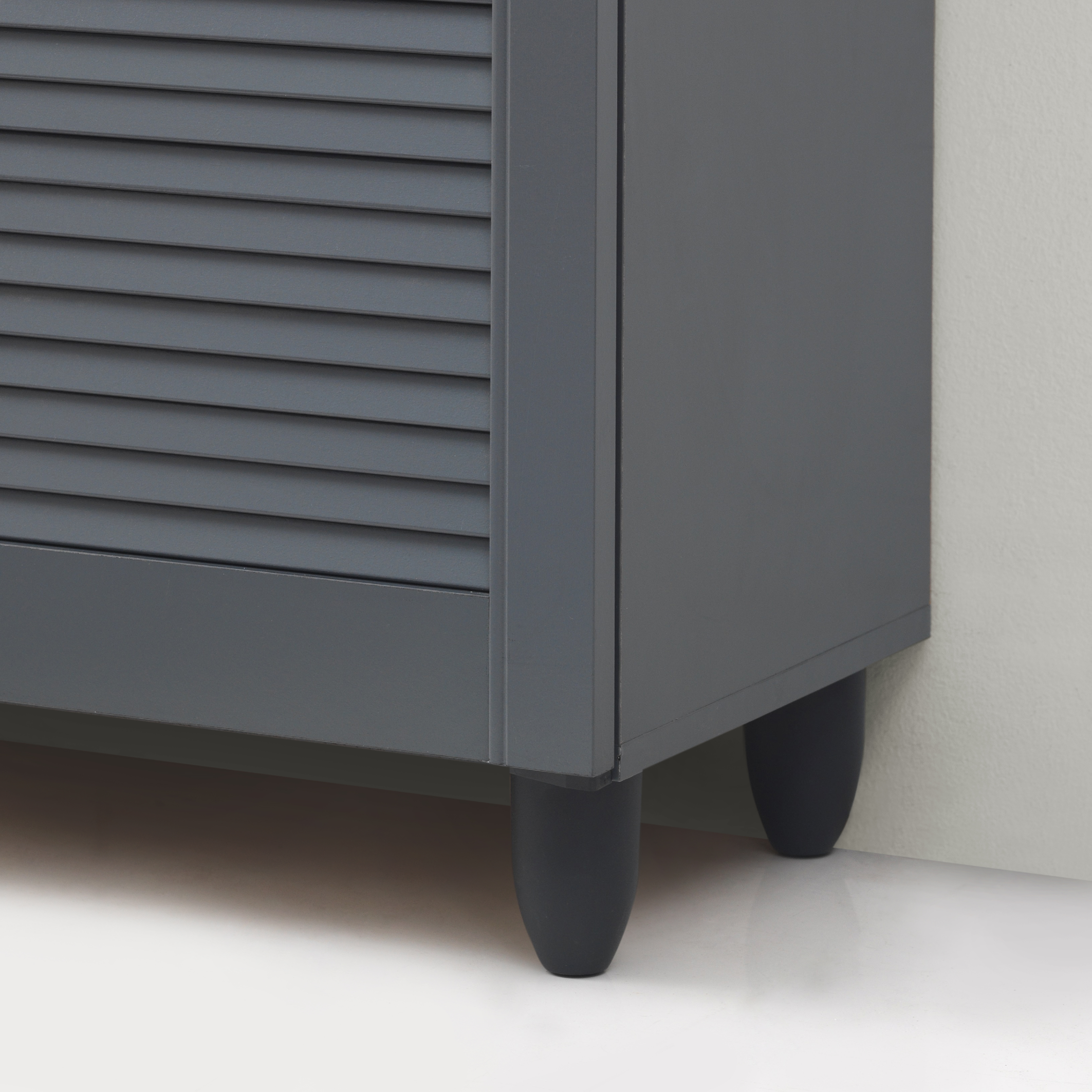 Keep your footwear organised with the Essentials 3 Door Shoe Cabinet, a sleek and practical storage solution designed to fit seamlessly into your hallway, living room, bathroom, or home office. This modern cabinet features three slatted doors and three fixed shelves, providing ample space for approximately 15 pairs of shoes while maintaining a slim profile ideal for narrow spaces.