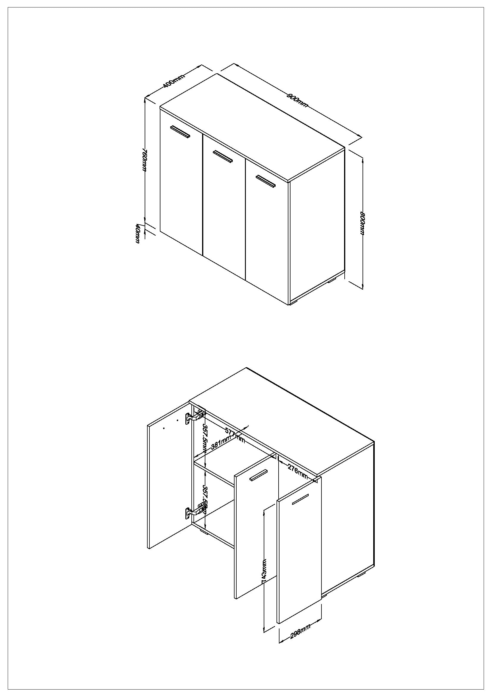 Our 3 door compact sideboard offers a simple, sleek storage solution for you. With double and single sections featuring fitted full depth shelves, there is plenty of space to store anything you want. Each door is fitted with metal adjustable self-closing hinges for convenience and durability.