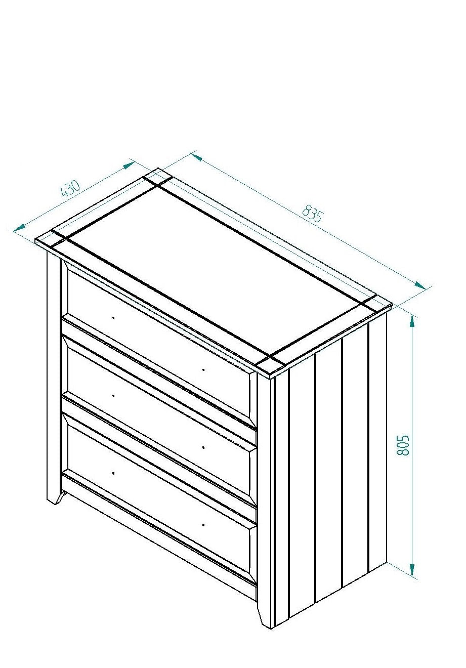 Painted - Space Saving 3 Drawer Chest - Luxurious Finish