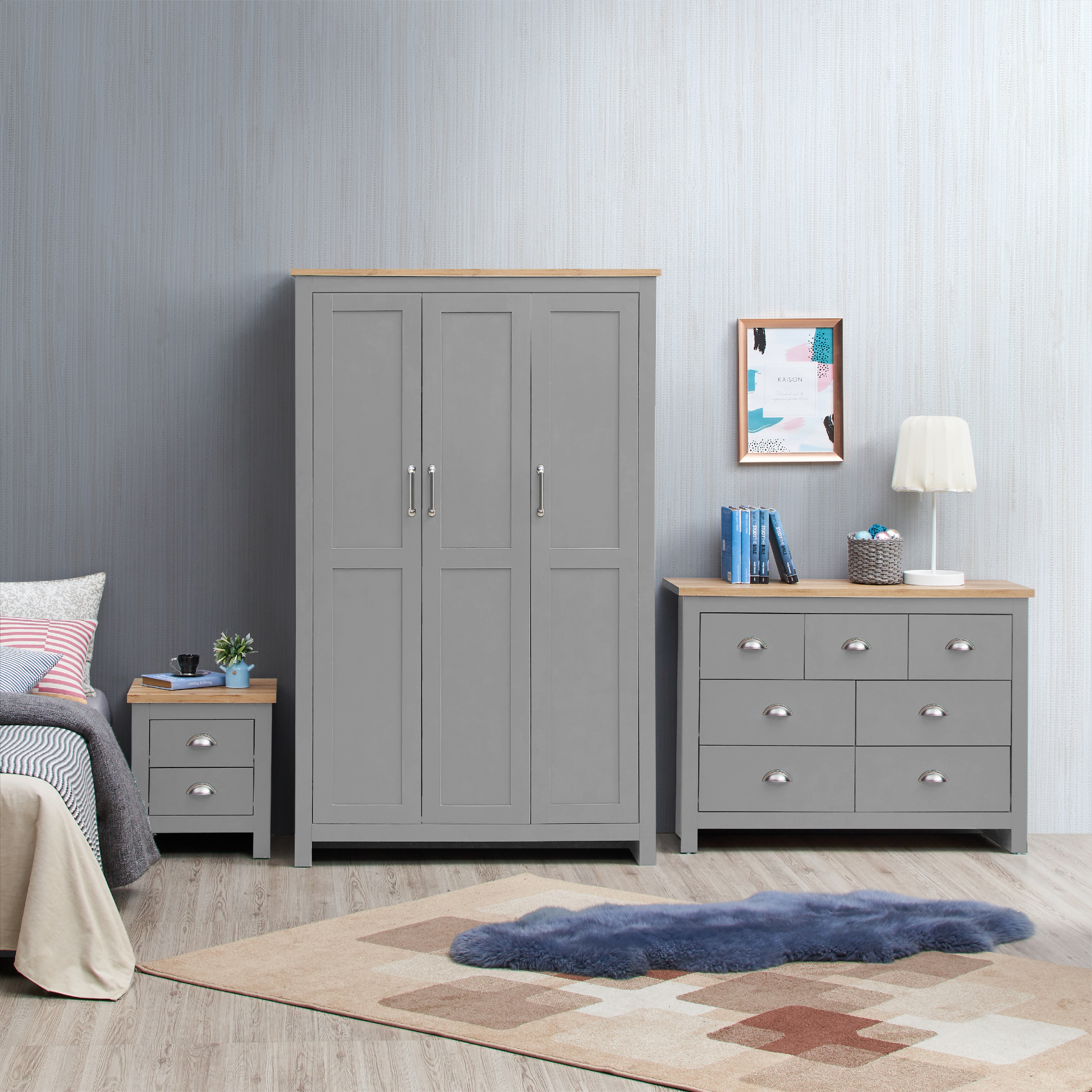 Lisbon - 3-Piece Set - 3 Door Wardrobe, 7 Drawer Chest & 2 Drawer Bedside Table