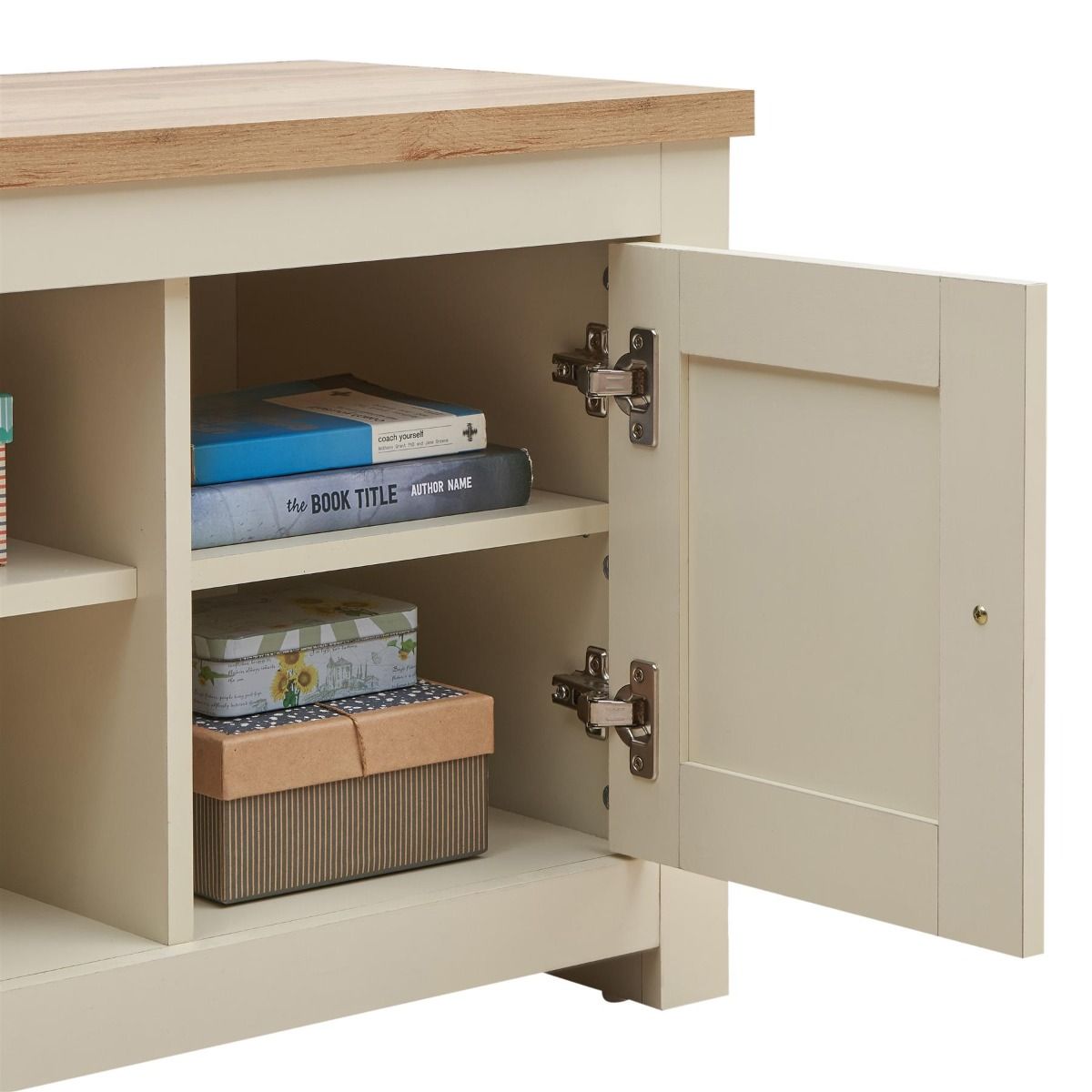 Bring warmth and comfort to your living space with this elegant 3 Piece Set. Featuring a TV unit, sideboard, and coffee table, each piece showcases a beautiful cream finish complemented by cascading oak tops, creating a welcoming and stylish atmosphere.