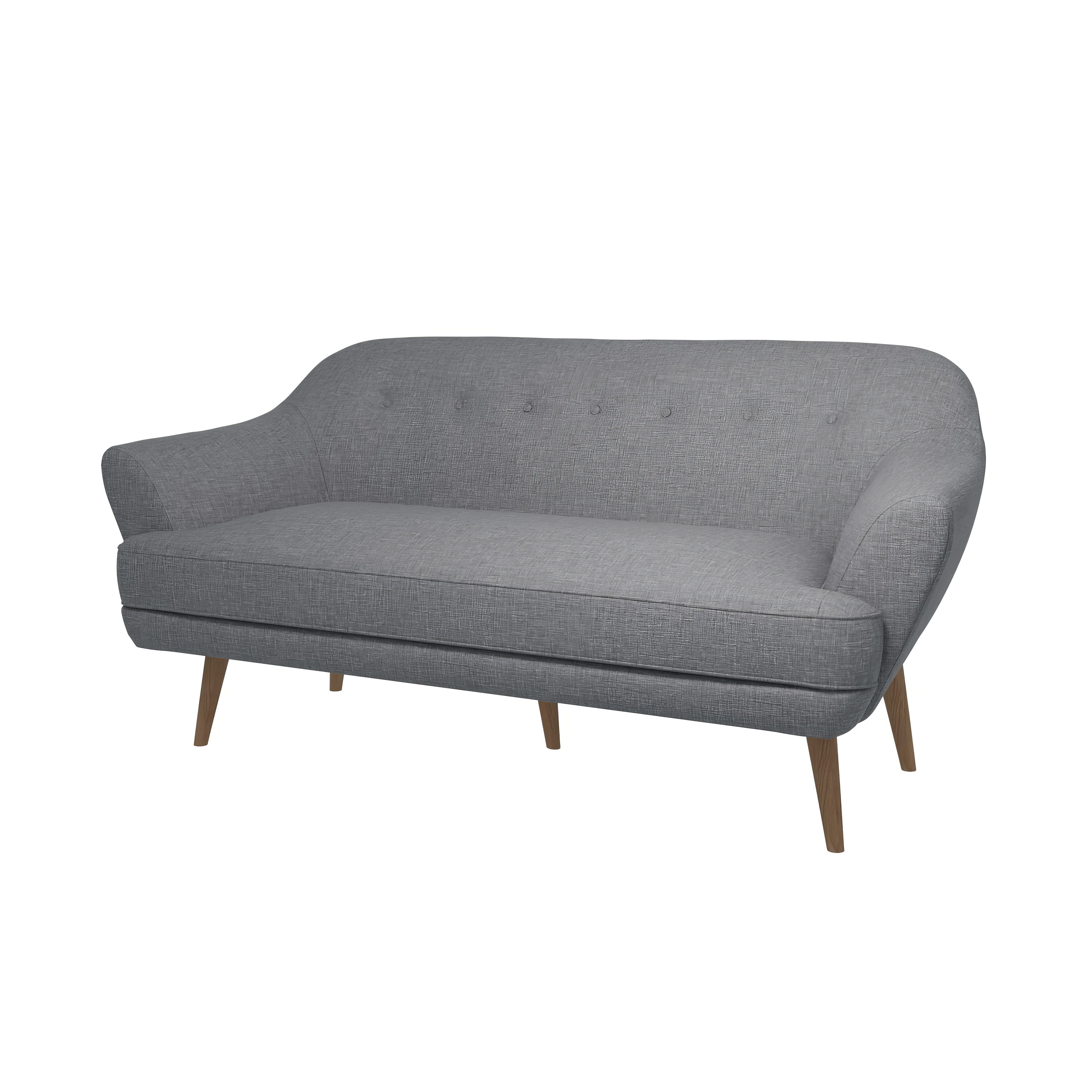 Upholstered in a sophisticated light grey fabric, this sofa brightens your living area and complements a variety of décor styles. The wooden legs are finished to enhance durability and aesthetic appeal, ensuring this piece remains a stylish centrepiece for years to come.