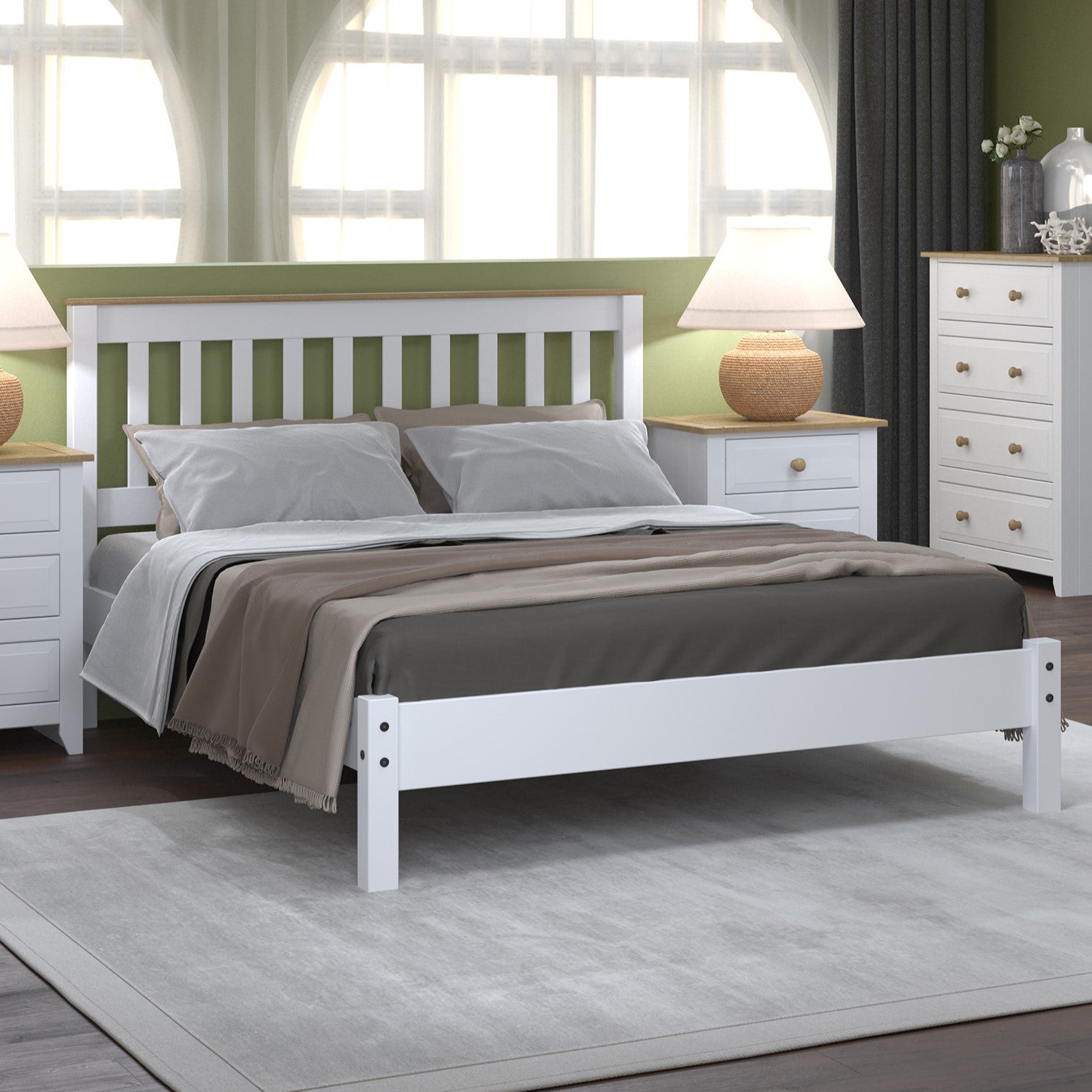 Painted - 4'6 Slatted Lowend Bedstead - White - Solid Pine