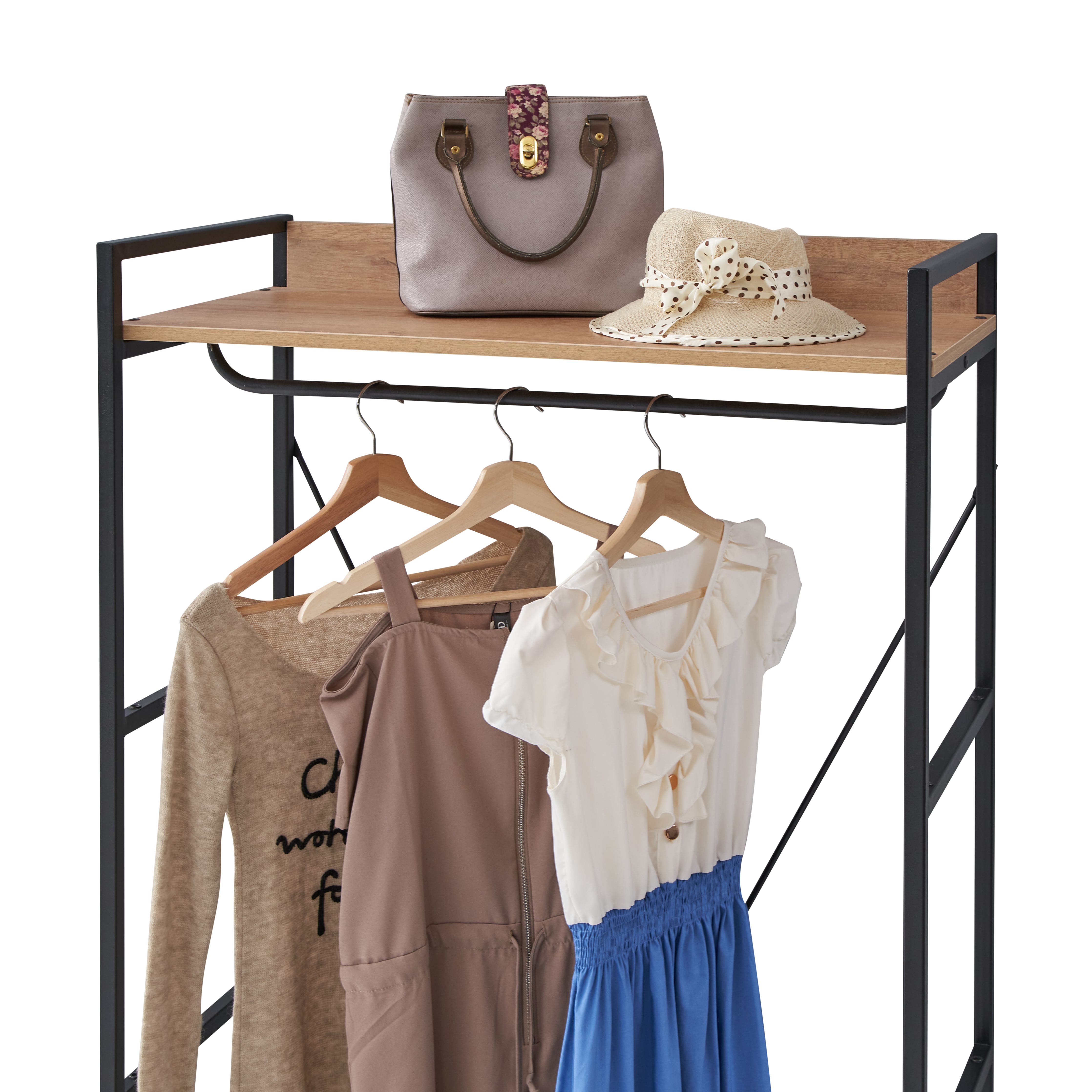 This Claire Open Wardrobe offers open storage and features a Light Oak Finish with Metallic Frames. This item includes a... Read more Read more
