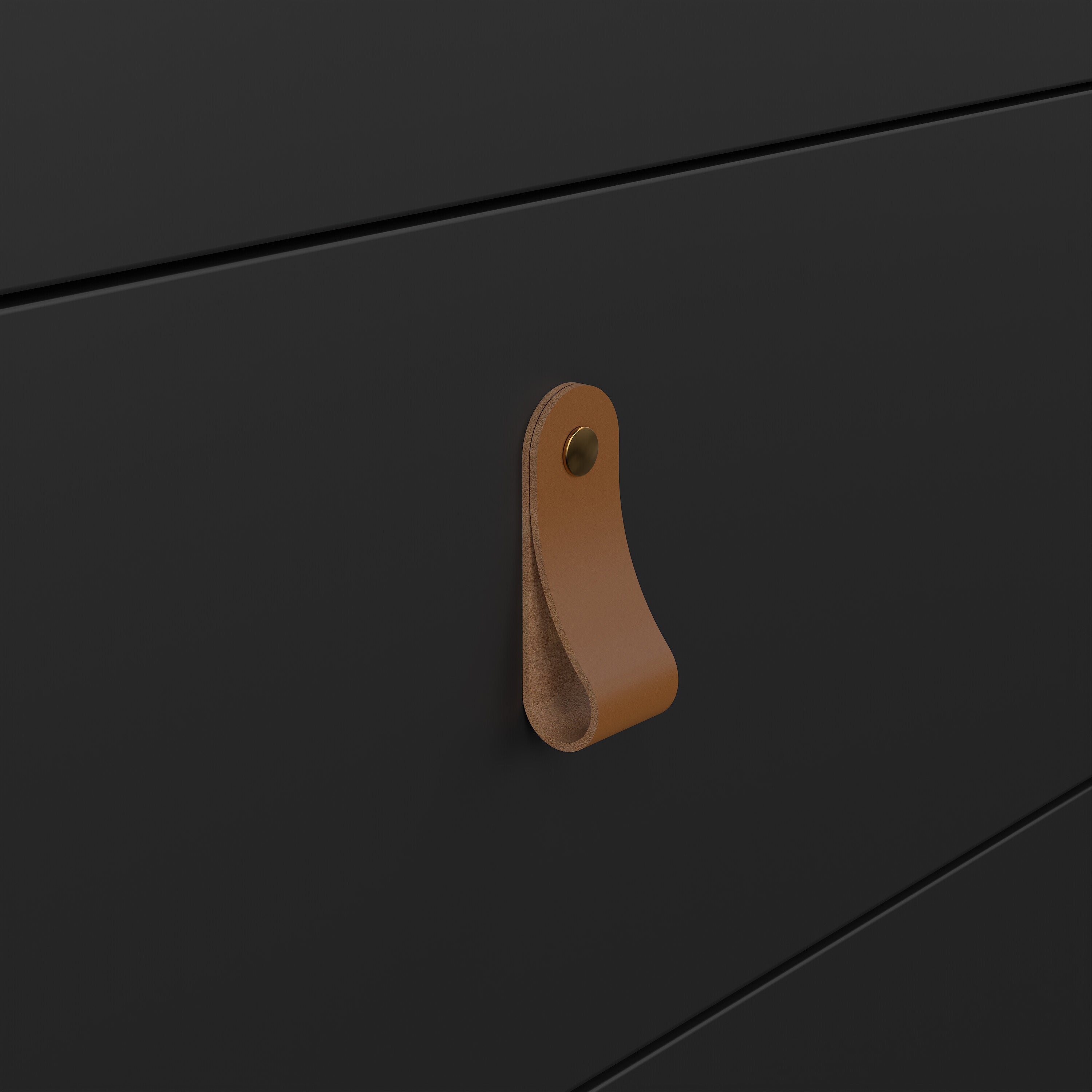 Available in two elegant finishes: Matt Black and White, both complemented by distinctive brown leather tab handles.