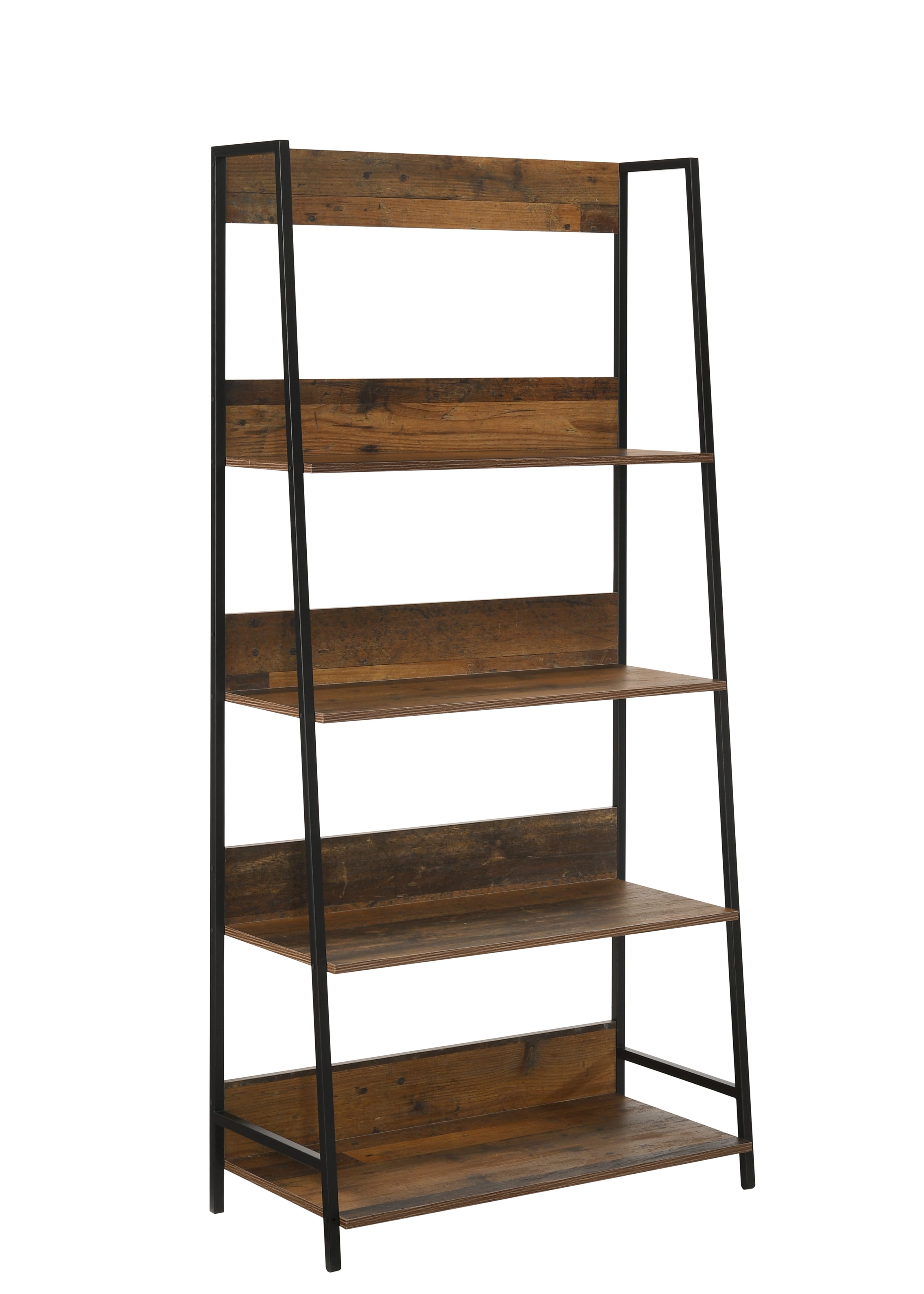 This bookcase features rustic wooden shelves finished in Abbey Oak, paired with a strong tubular iron outer frame and legs, combining natural warmth with industrial strength.