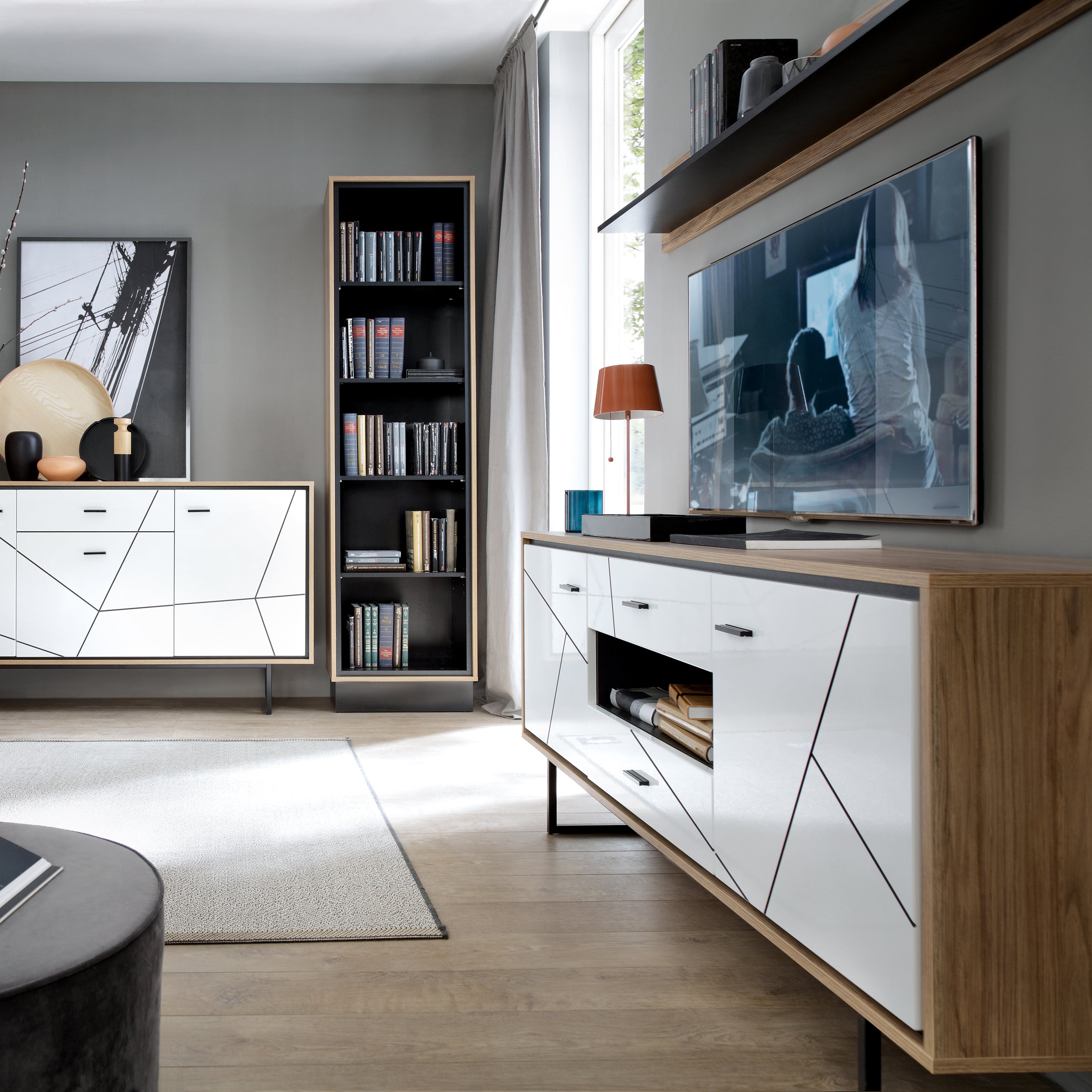 Enhance your living space with the Brolo 167cm Wall Shelf, combining stylish walnut and dark panel finishes for a modern,... Read more Read more