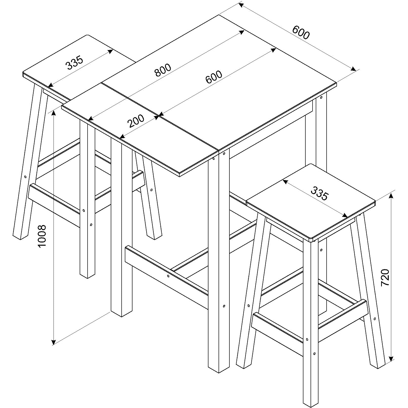 • Includes 1 table and 2 high stools