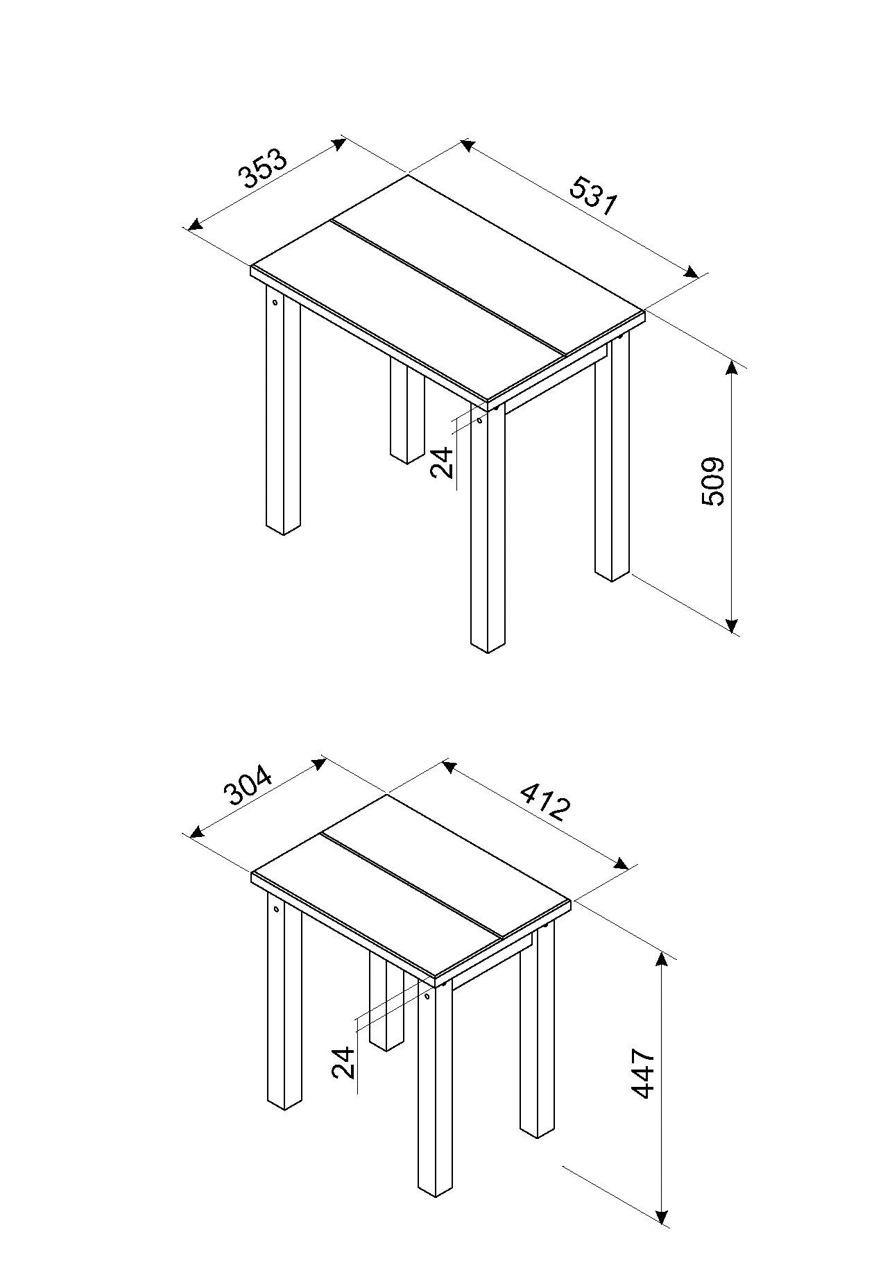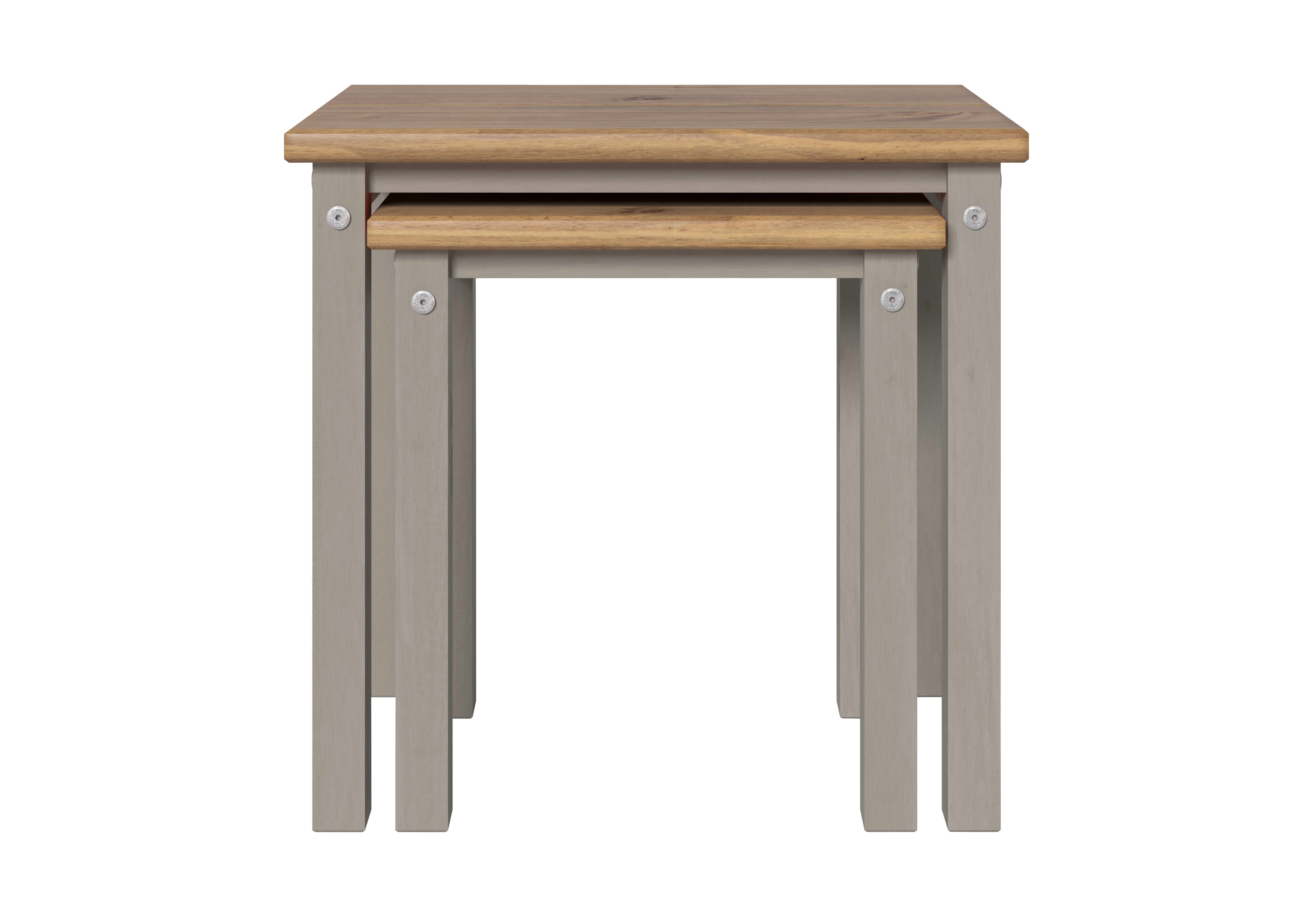 Useful set of 2 tables which can be used independently or nested to save space. Featuring a grey waxed finish underframe with antique waxed pine tops with a plank effect.