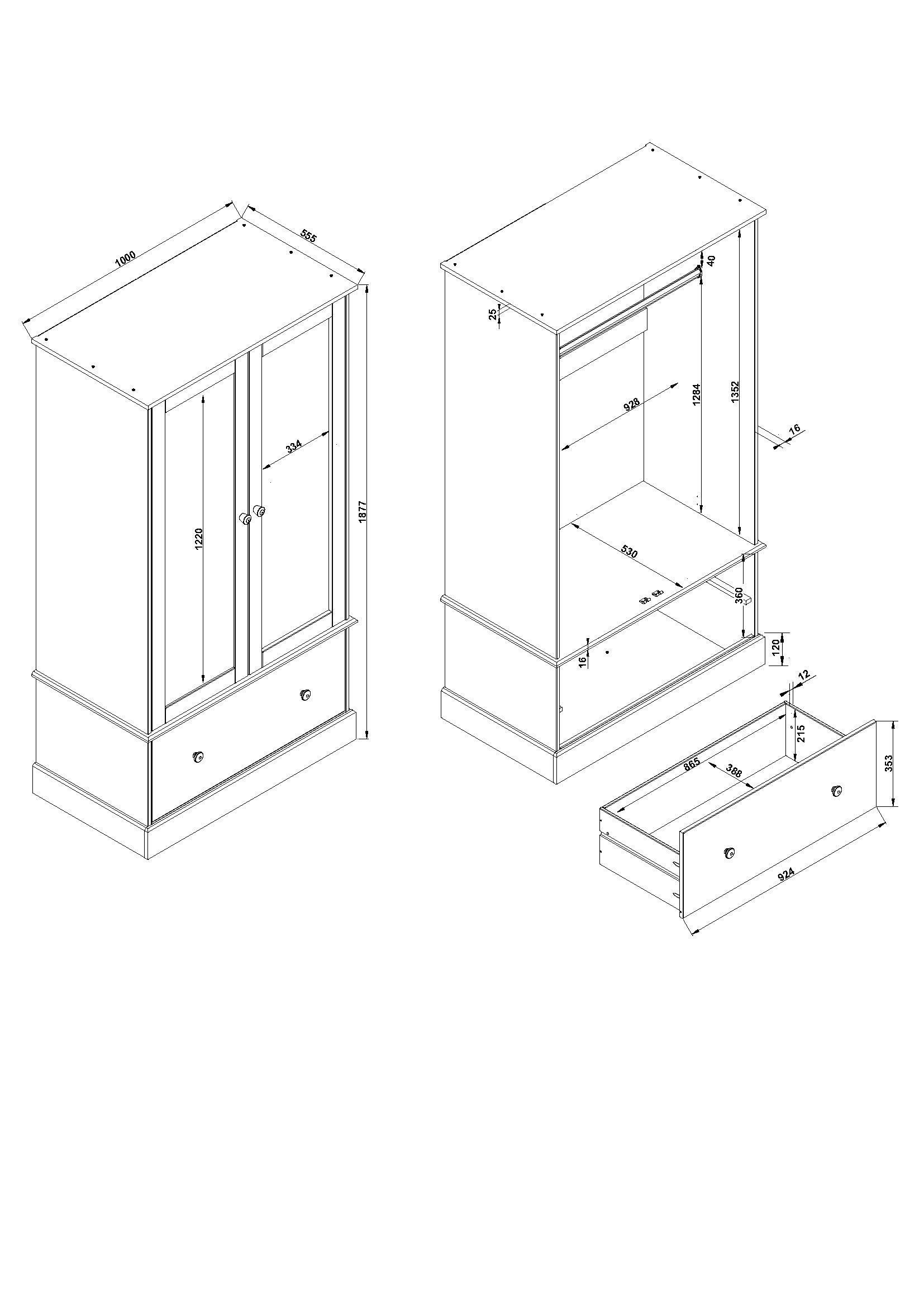 Please note that colours may vary slightly. This wardrobe is flat packed and requires self-assembly with a screwdriver and hammer.