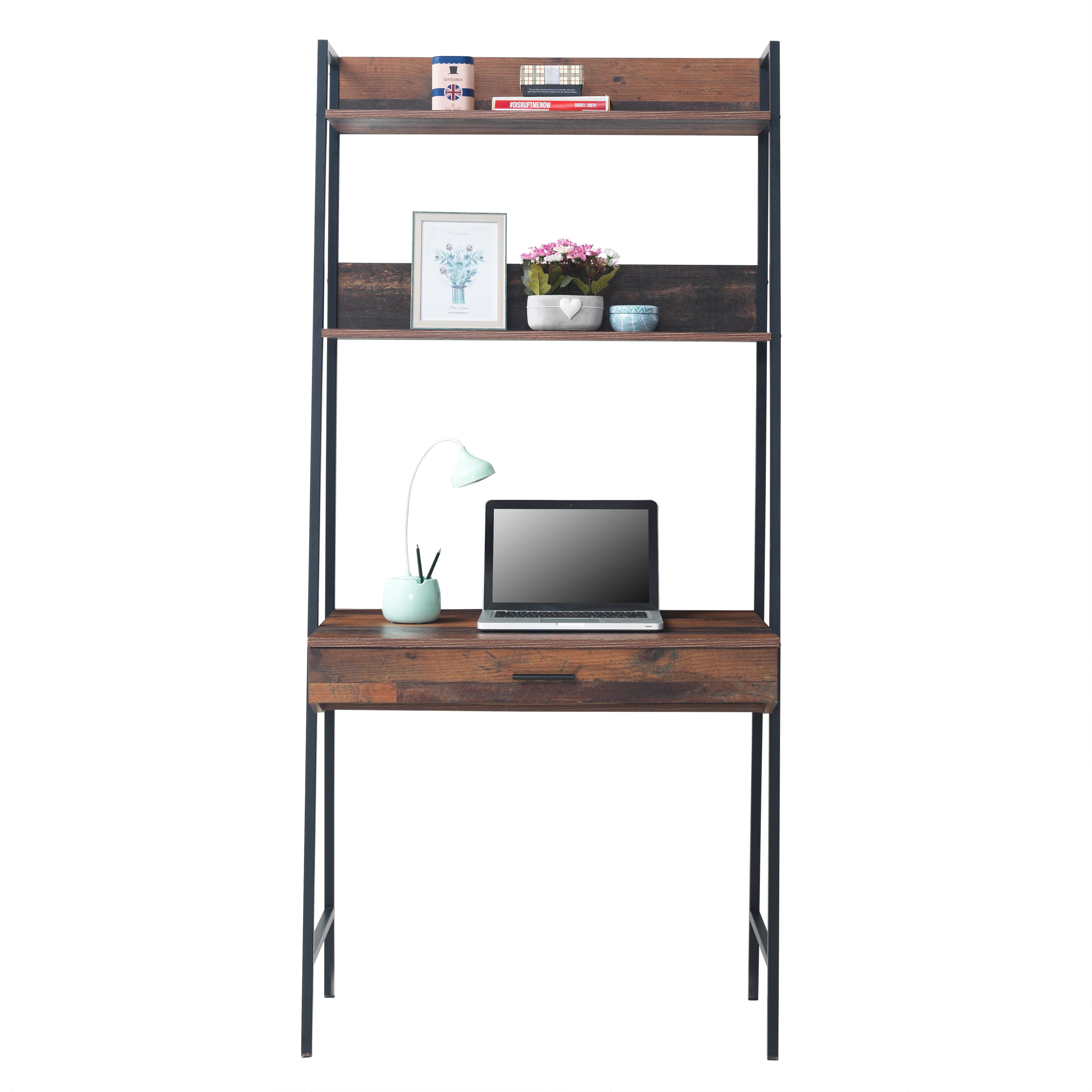 • 3 Tiered Desk Shelving Unit: Additional shelving above the desktop provides ample space for organising books, decor, or office essentials.