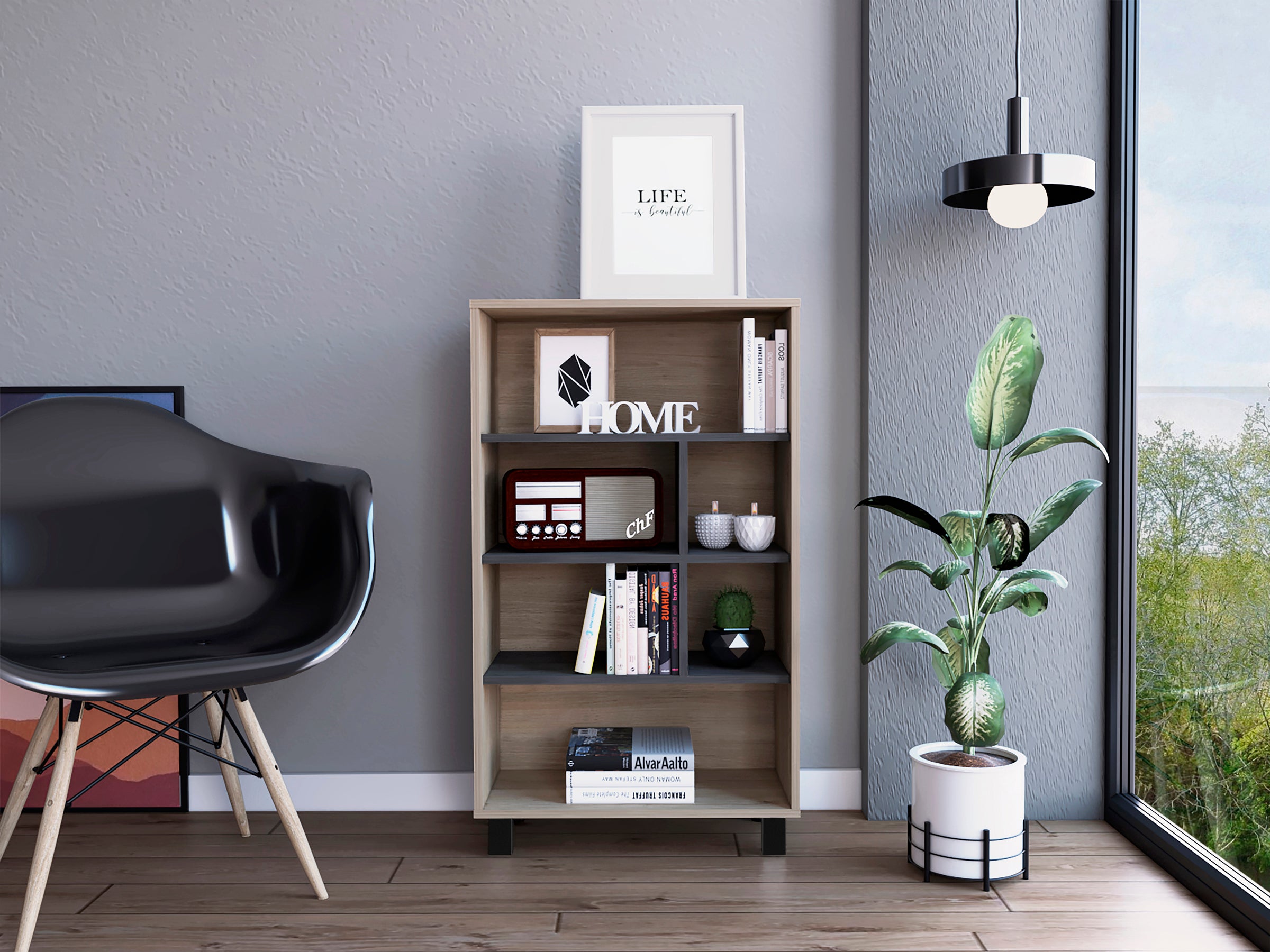 Modern Living - Display Bookcase - Washed Oak and Carbon - Grey Finish