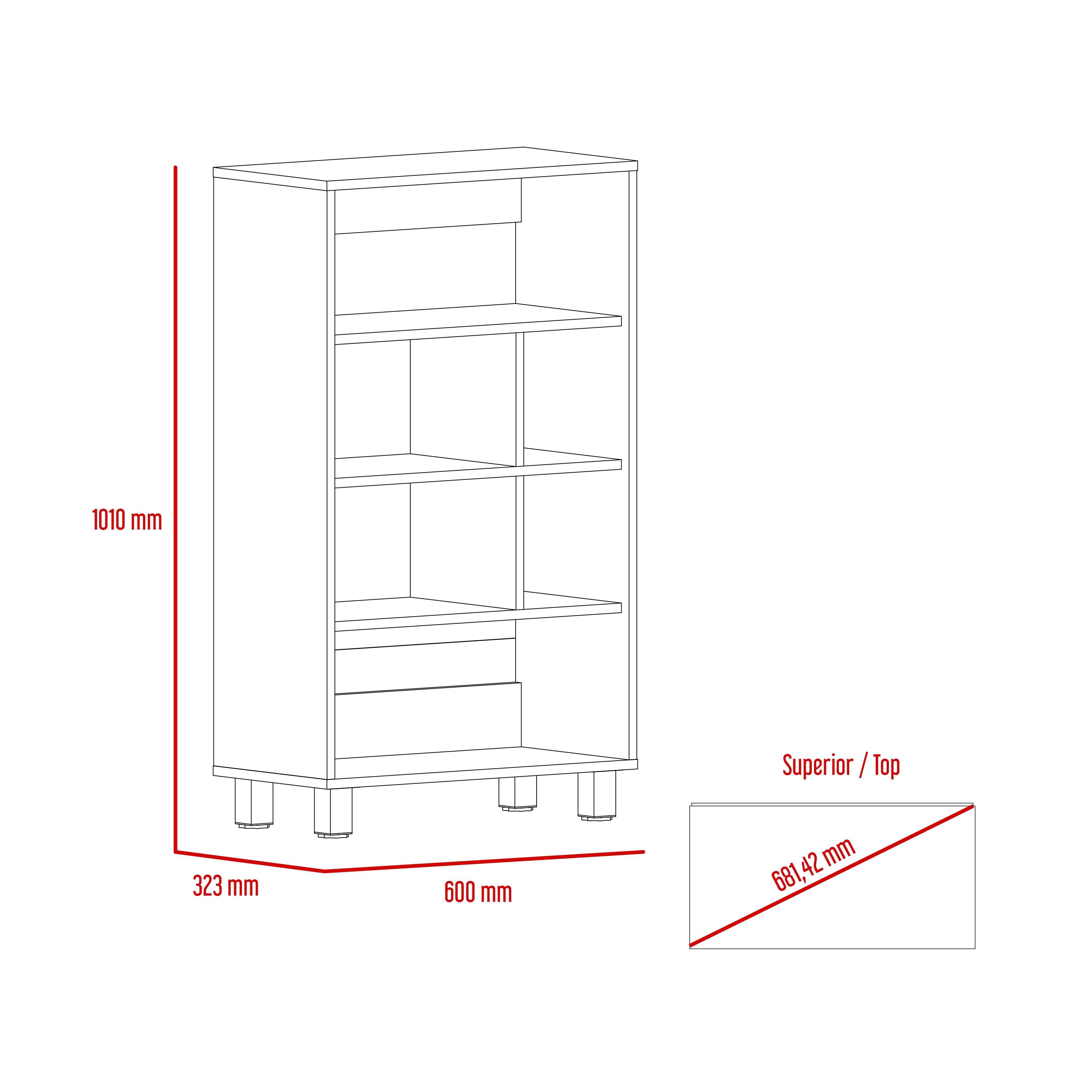 • Useful storage with fixed open shelves