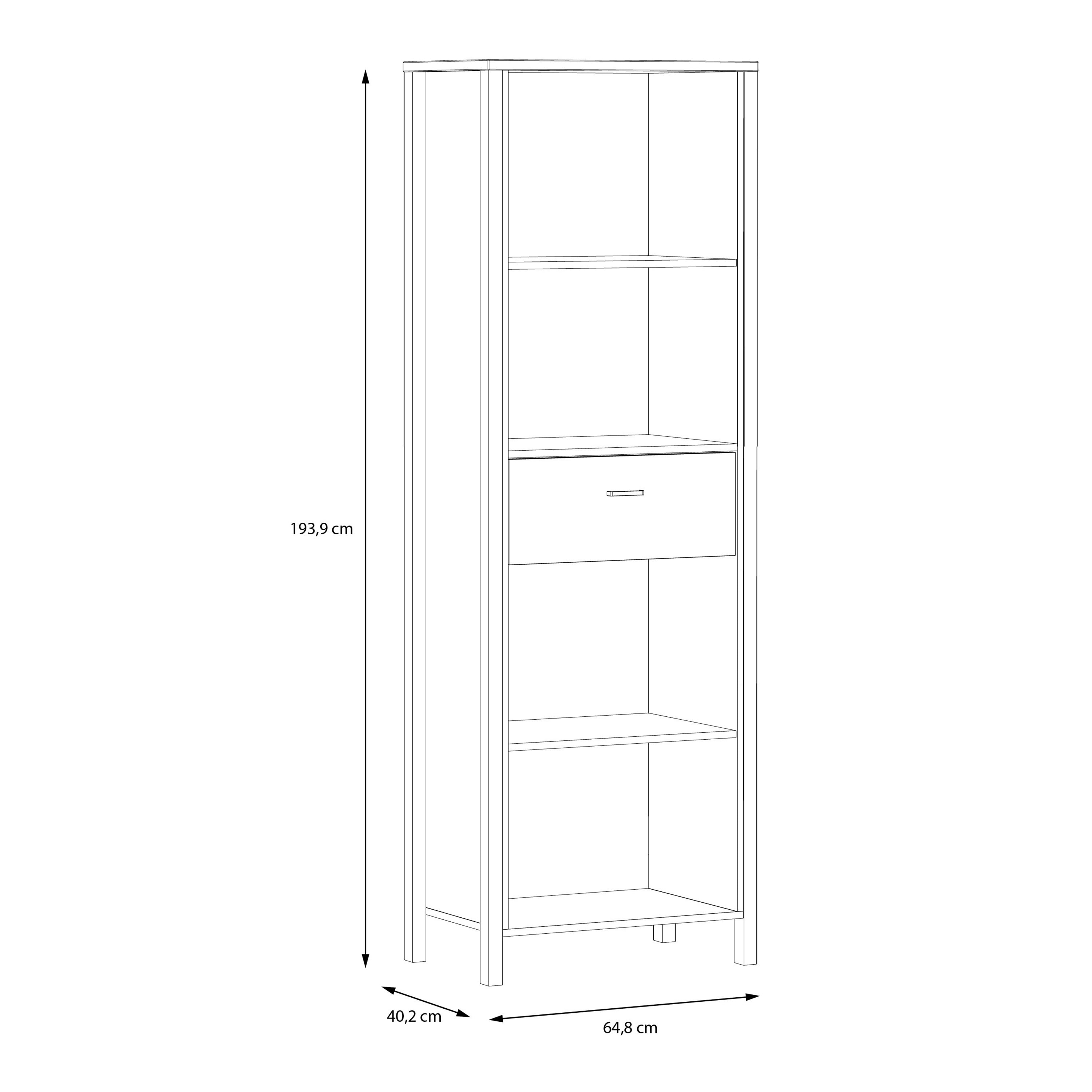 Discover the High Rock Shelf Unit, a stunning blend of Riviera Oak decor with matt black accents, designed to add a sophisticated industrial touch to your home while offering practical storage solutions.