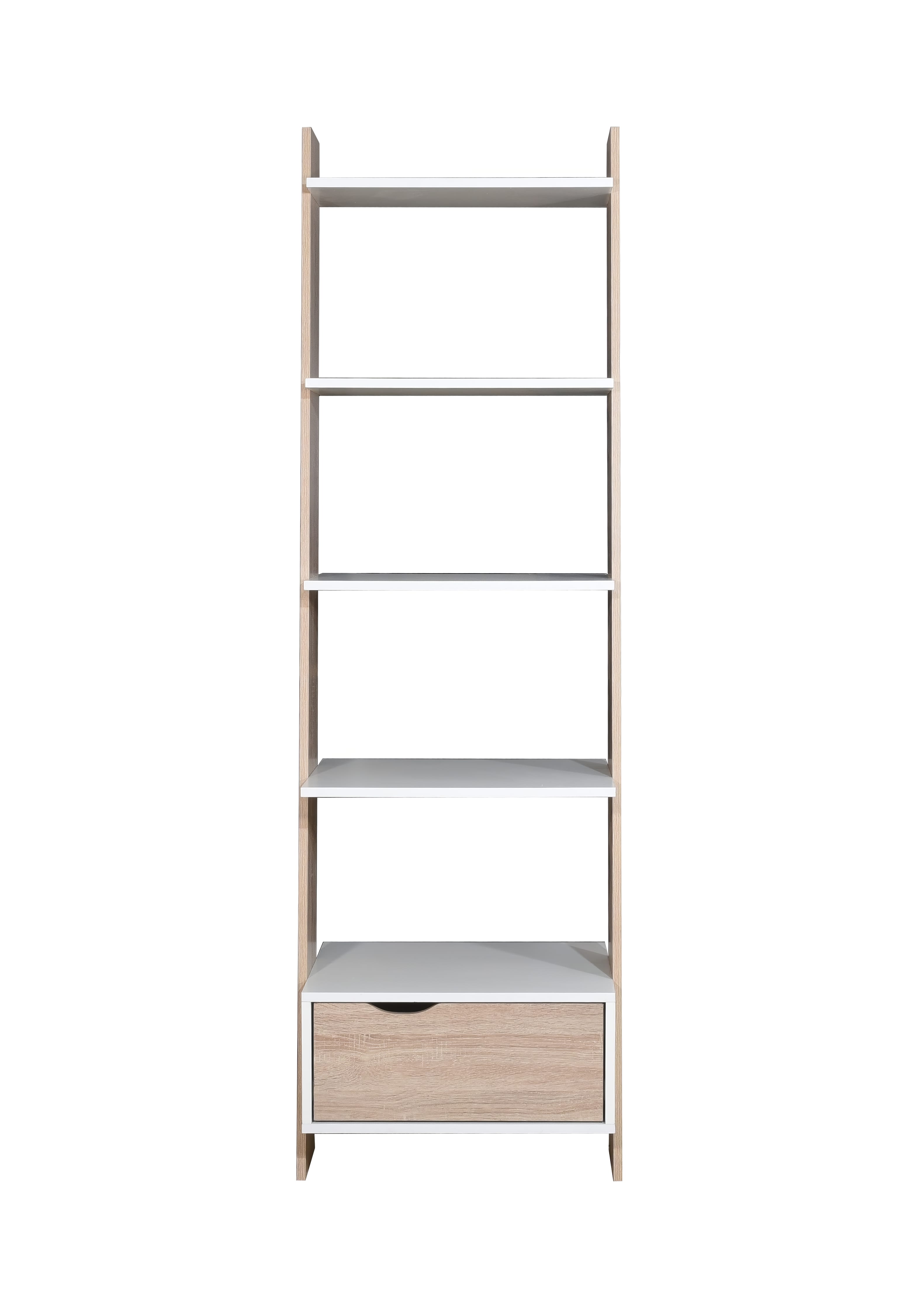 Save space and stay organised with this stylish Ladder Bookcase with Drawer. Featuring a unique leaning design, this bookshelf offers five graduating open shelves alongside a handy bottom drawer, making it perfect for displaying books, photos and decorative items while keeping clutter out of sight.