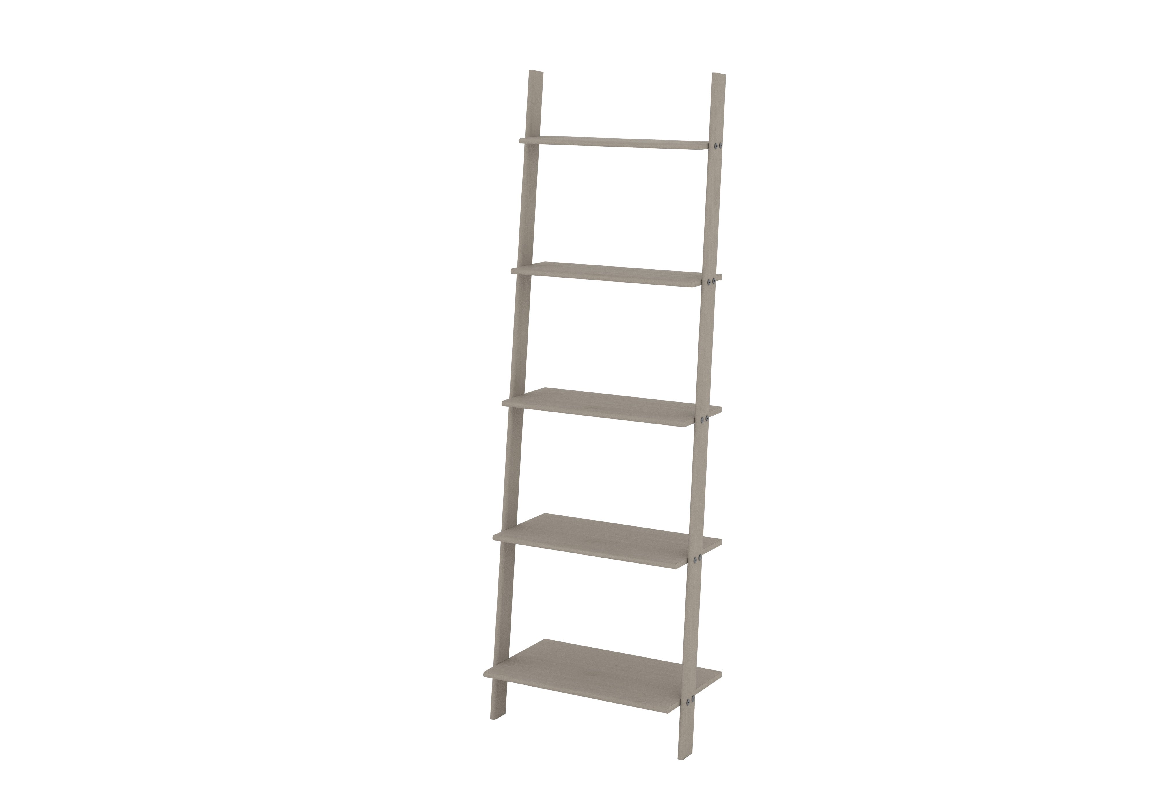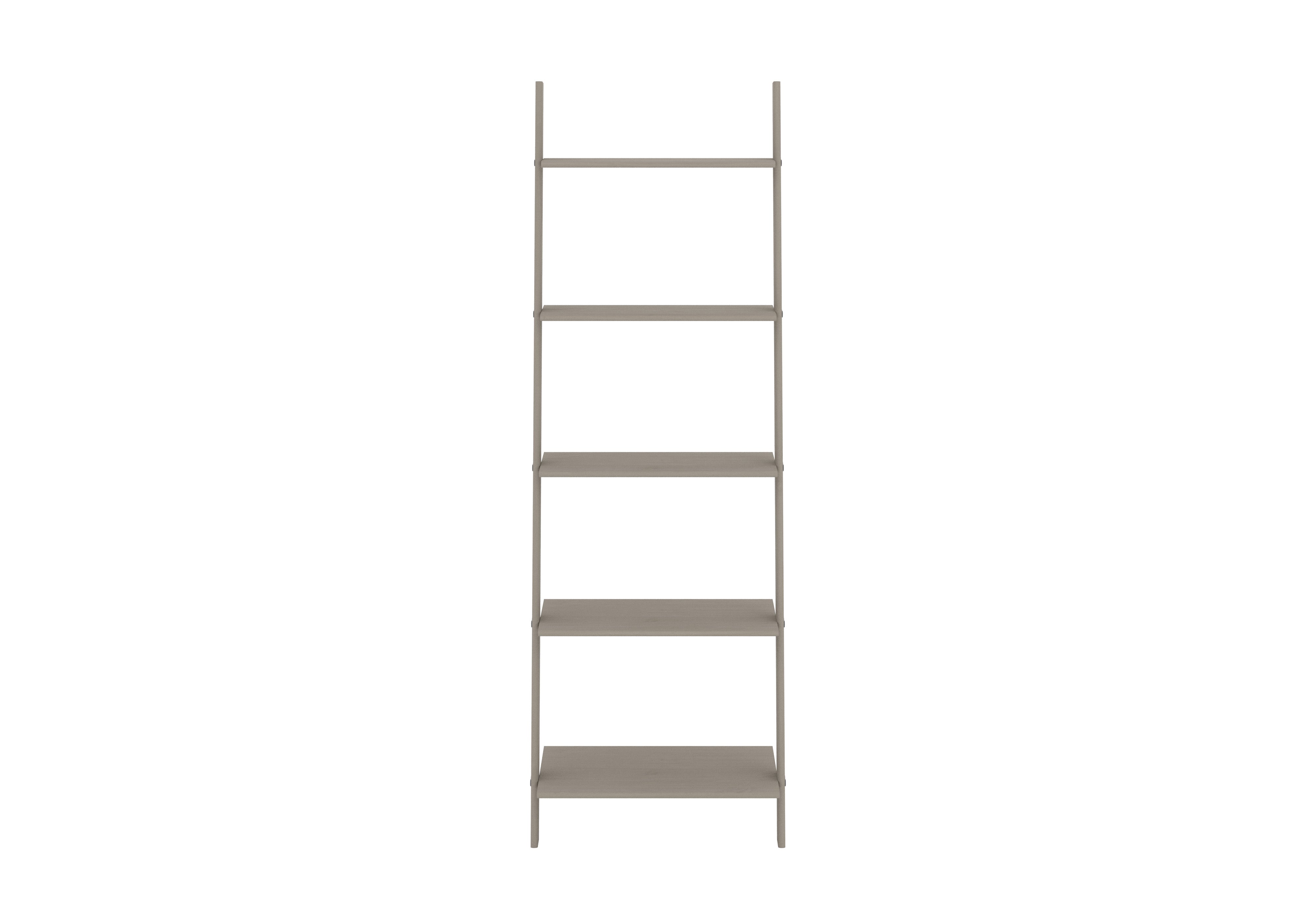 This stylish and functional ladder style bookcase offers a variety of shelving depths all finished in a grey wax, perfect for showcasing your favourite books and decor.