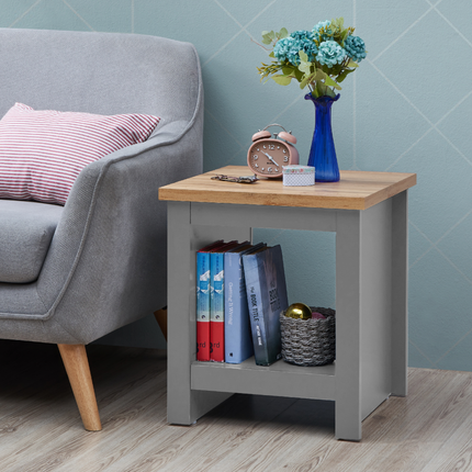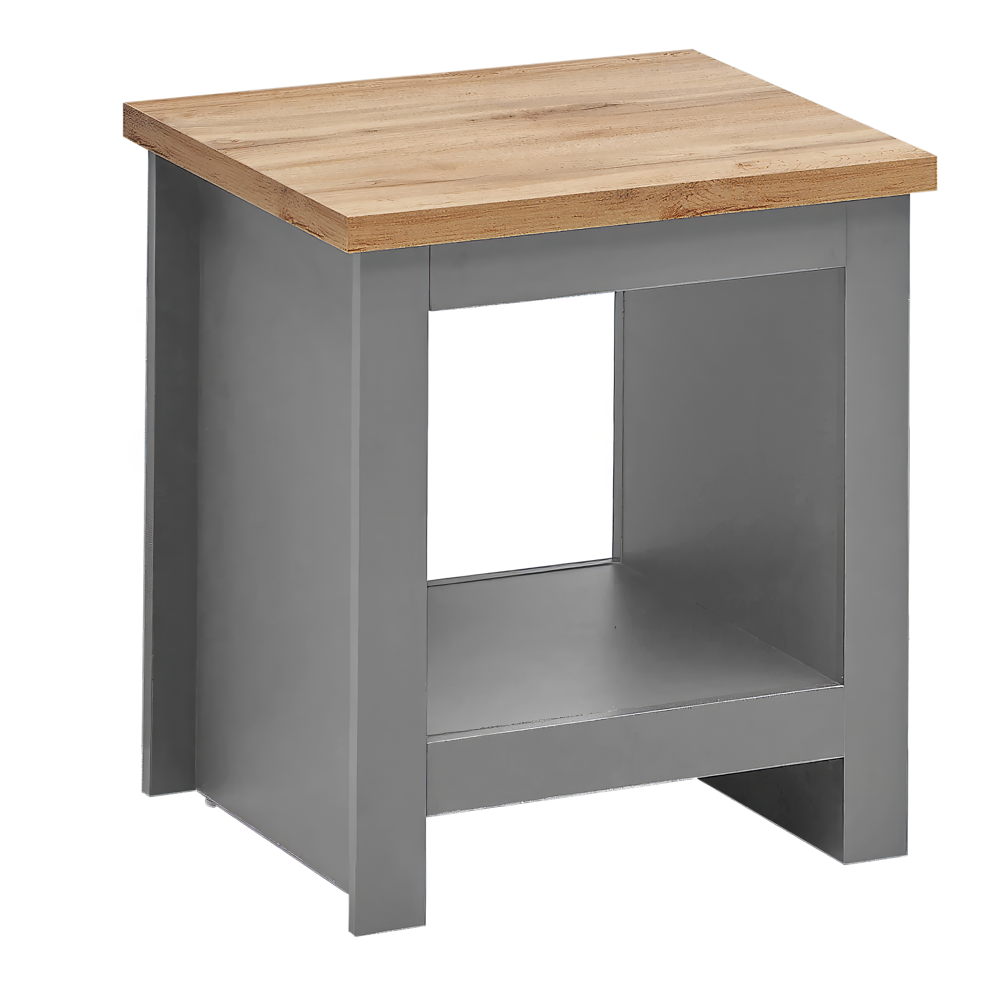 Introducing the Lisbon Side Lamp Table, a stylish and sophisticated addition to any living area or bedroom. Featuring a warm oak effect top paired with cream or light grey frames, this compact table blends functionality with timeless design to enhance your home environment.