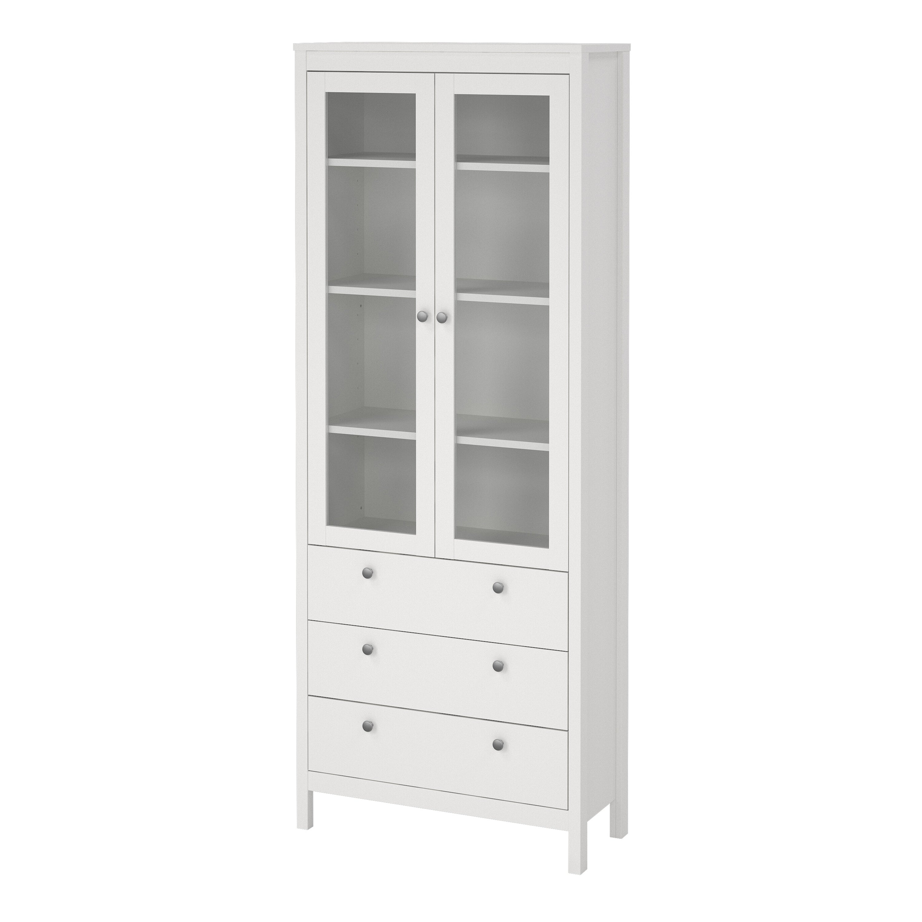 • Two glass doors and three spacious drawers with smooth metal glide runners