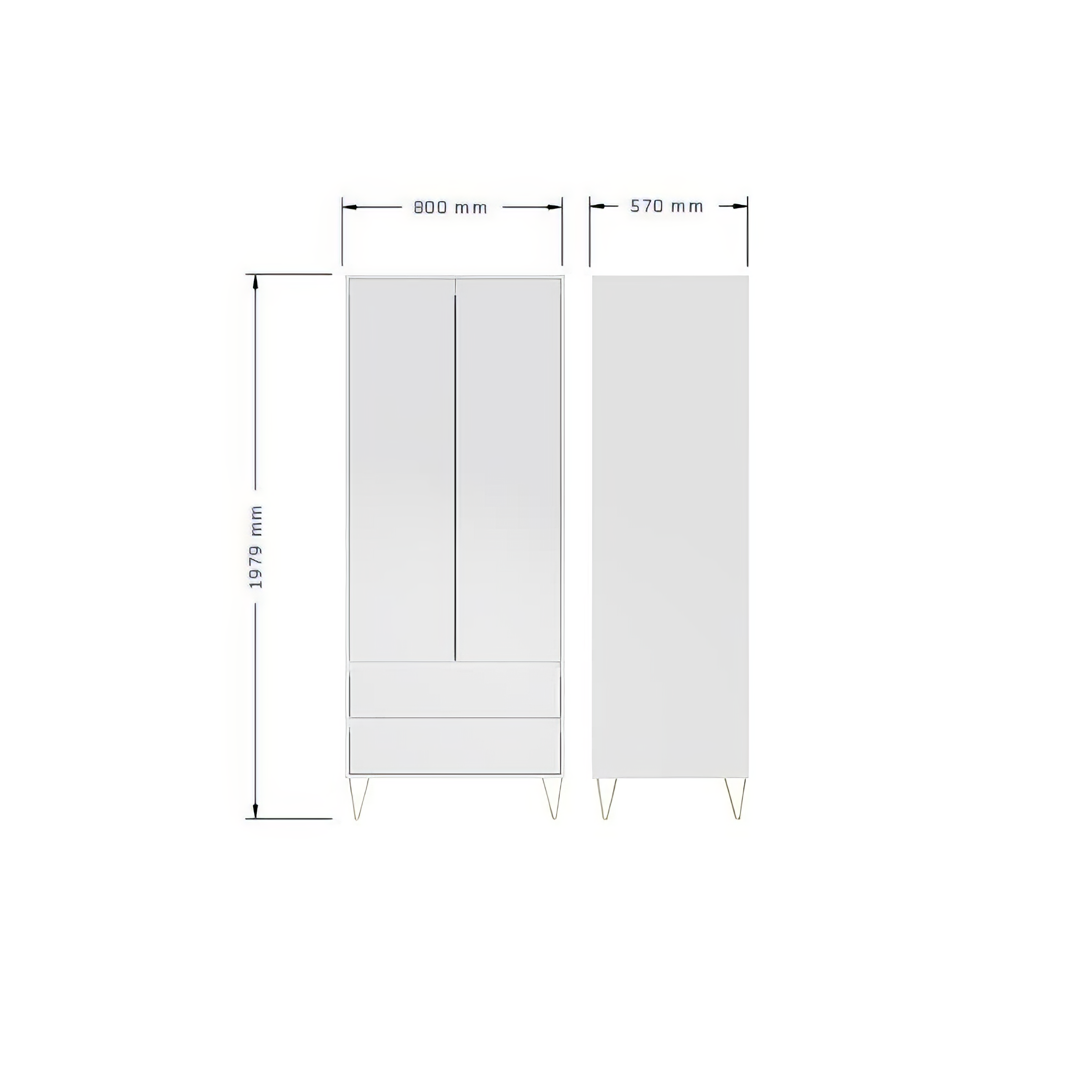 The wardrobe features a smooth white finish paired with modern gold legs, combining durability with elegant aesthetics to suit a variety of contemporary interiors.