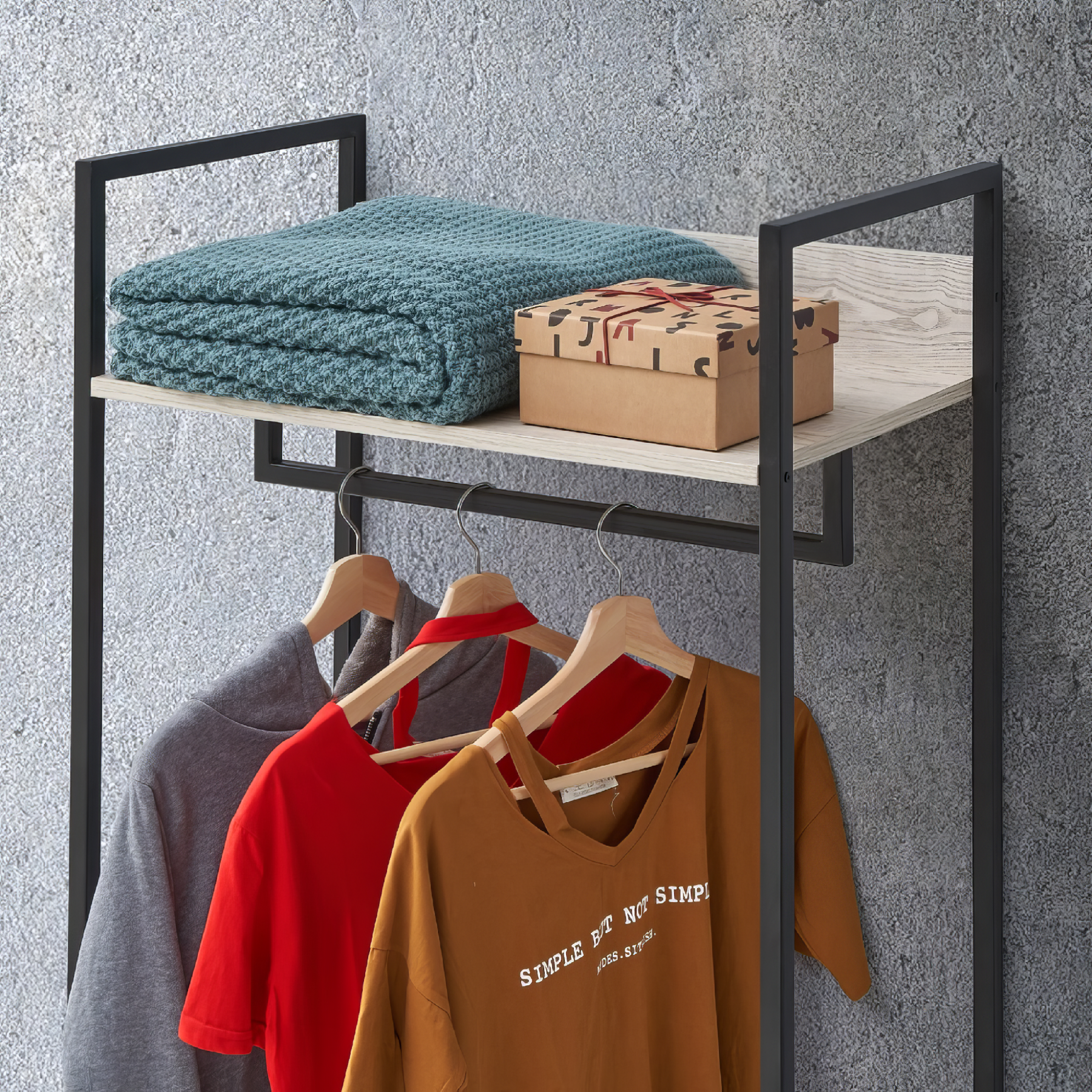 • Spacious Storage: Includes a hanging rail, three open shelves, and two large drawers for clothes and accessories.