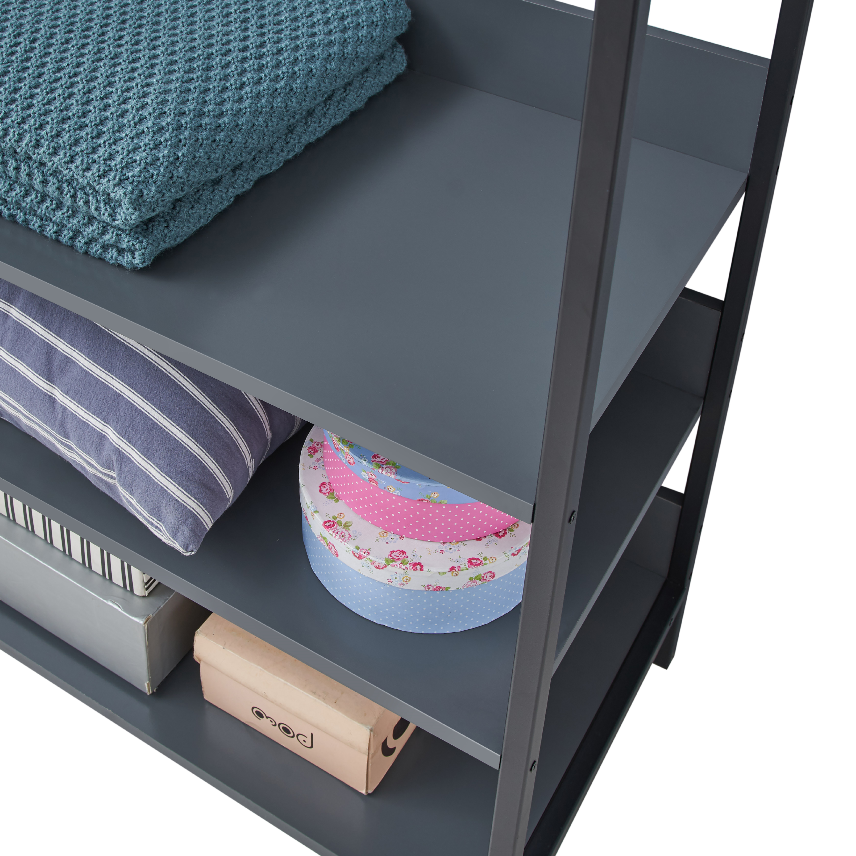 • Ample Storage Space: Includes four open shelves and a hanging rail to keep your garments and accessories neatly organised.