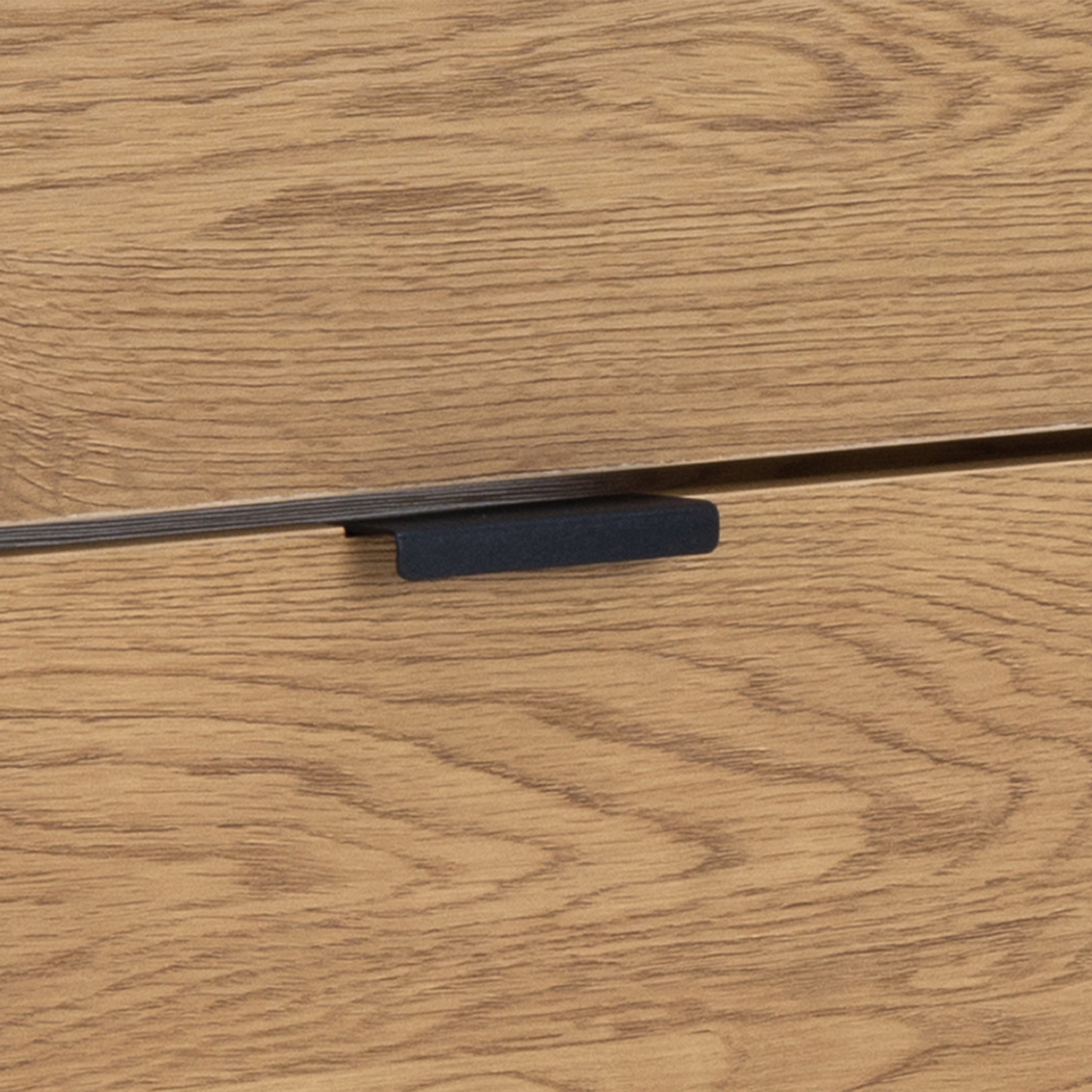 Enhance your home organisation with the Seaford Shoe Cabinet, combining sleek modern design and practical storage. Its matte black steel frame and natural oak-effect drawers offer a stylish solution for shoe storage.