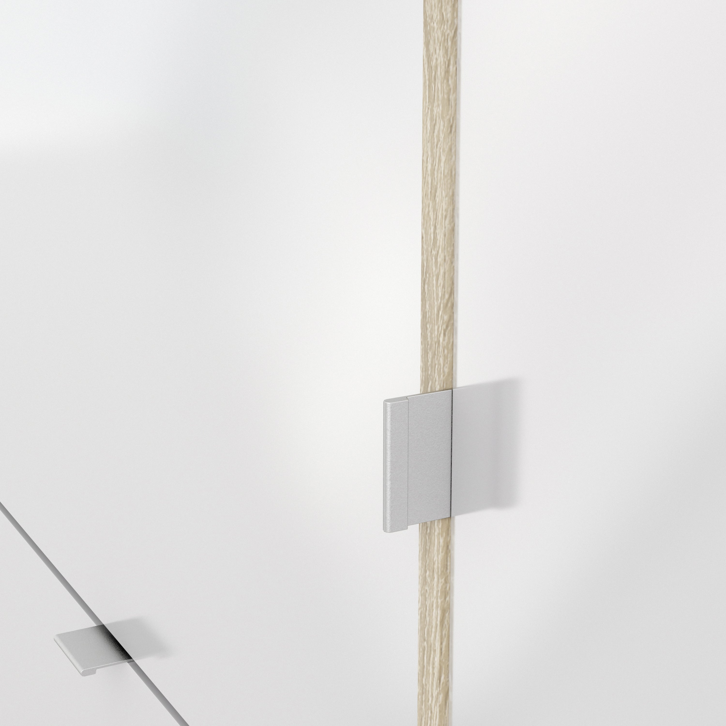 Oak structure combined with white high gloss fronts for a stylish and contemporary look.