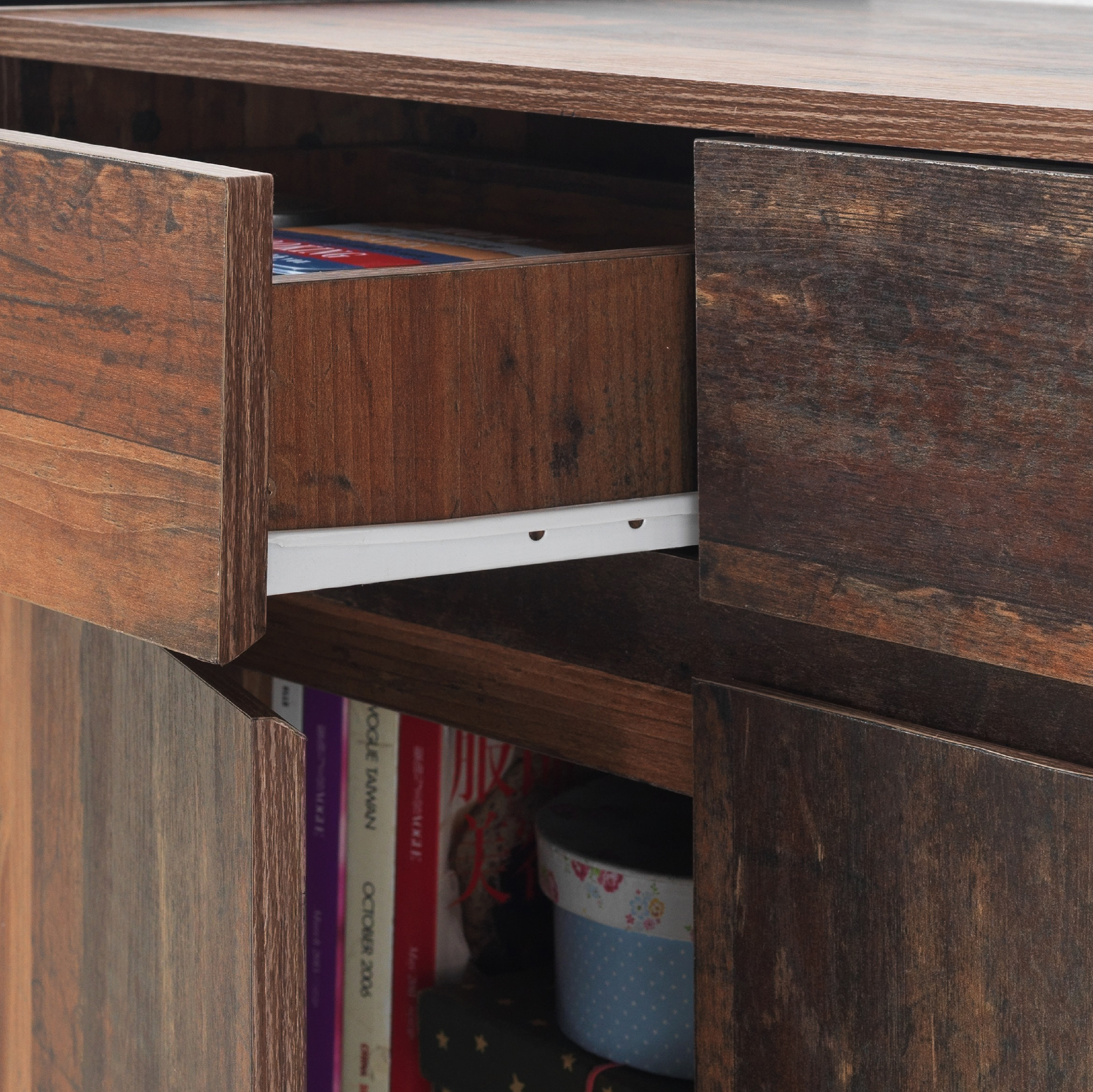 • Generous Storage: Includes 2 spacious drawers and 2 cupboards, plus additional open storage space on the sides.