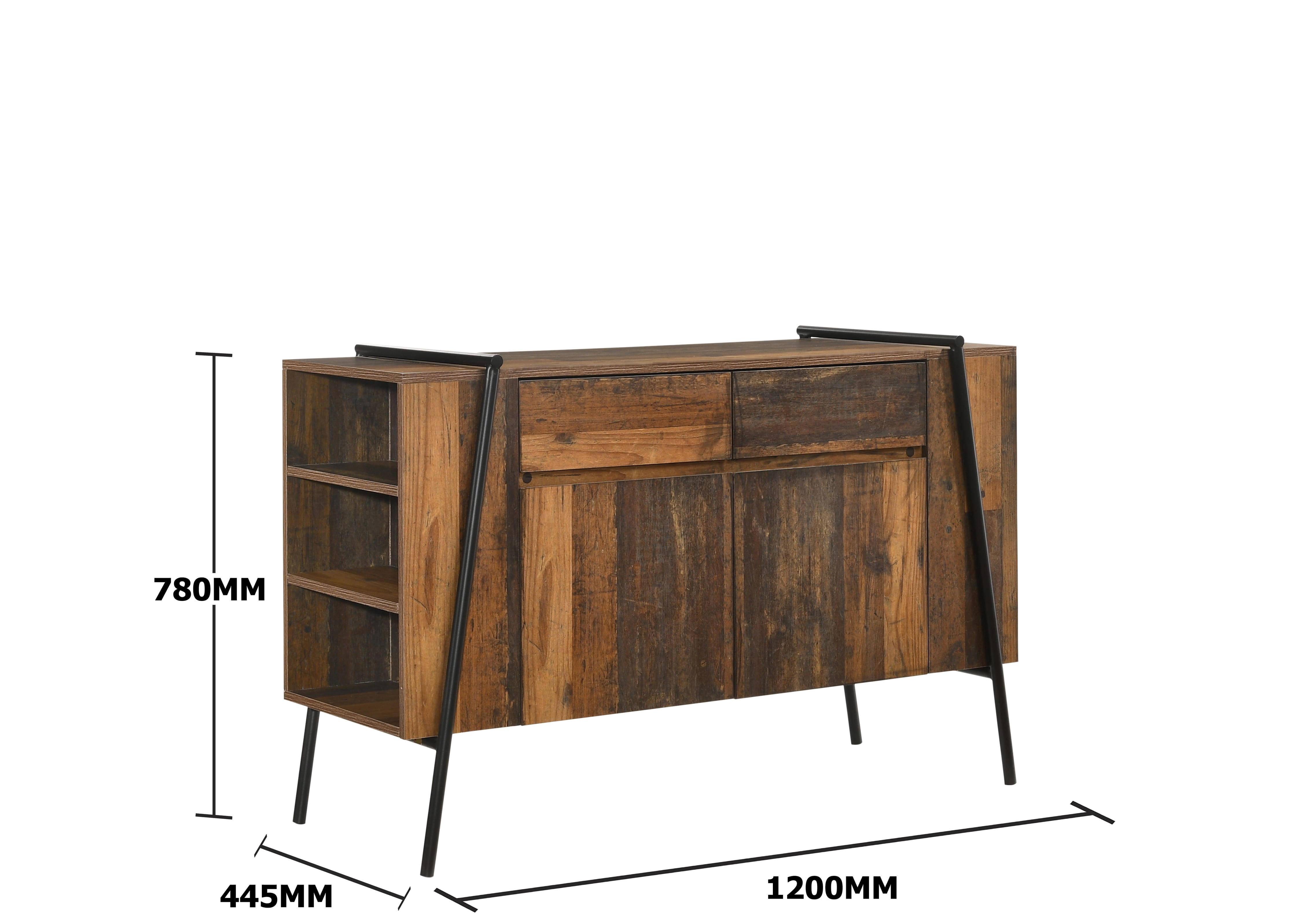 Enhance your living space with the Abbey Sideboard, a distinctive piece that blends rustic charm with modern practicality. Featuring a warm Abbey Oak finish paired with sturdy tubular iron frames, this sideboard offers both style and ample storage for your home essentials.