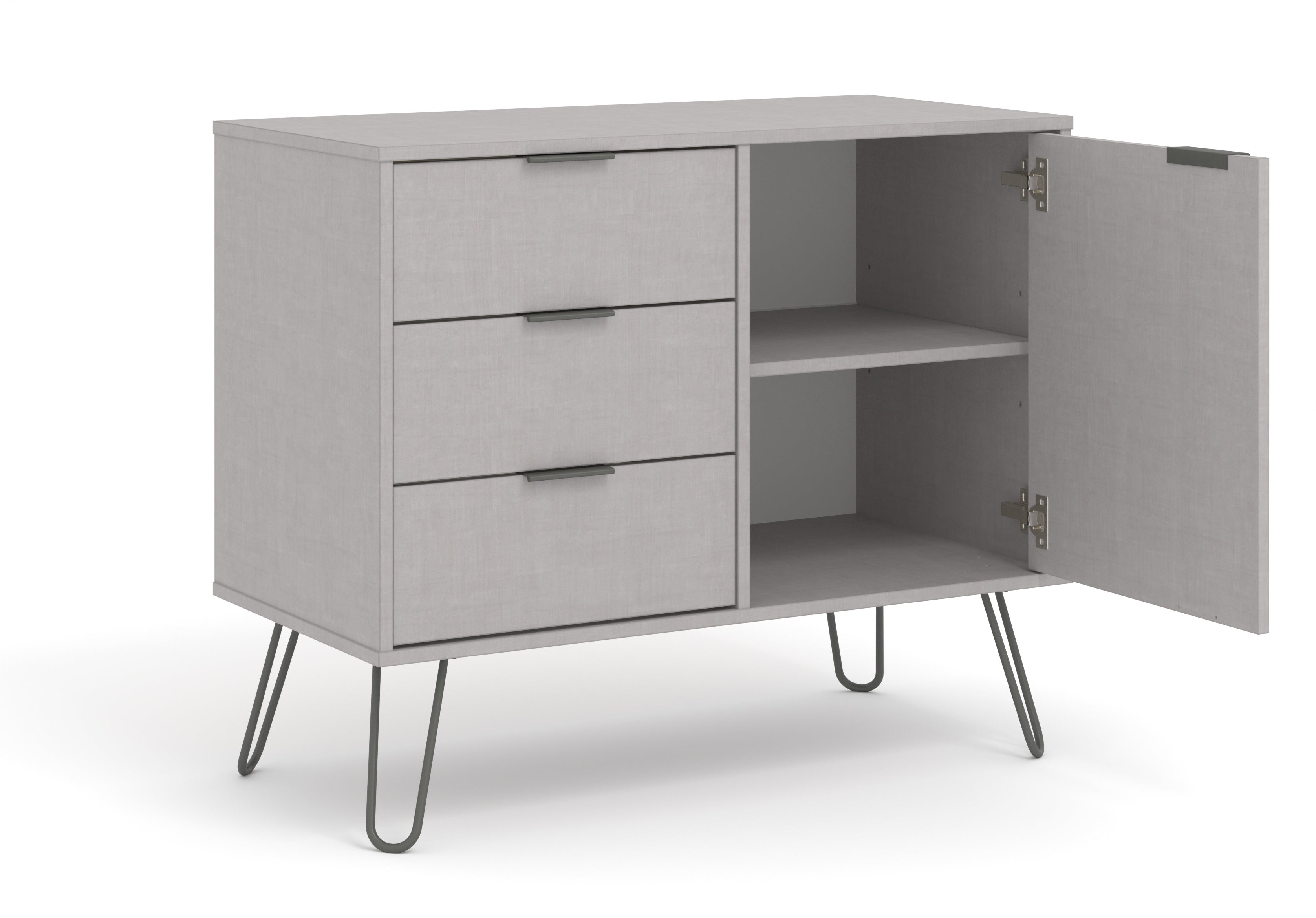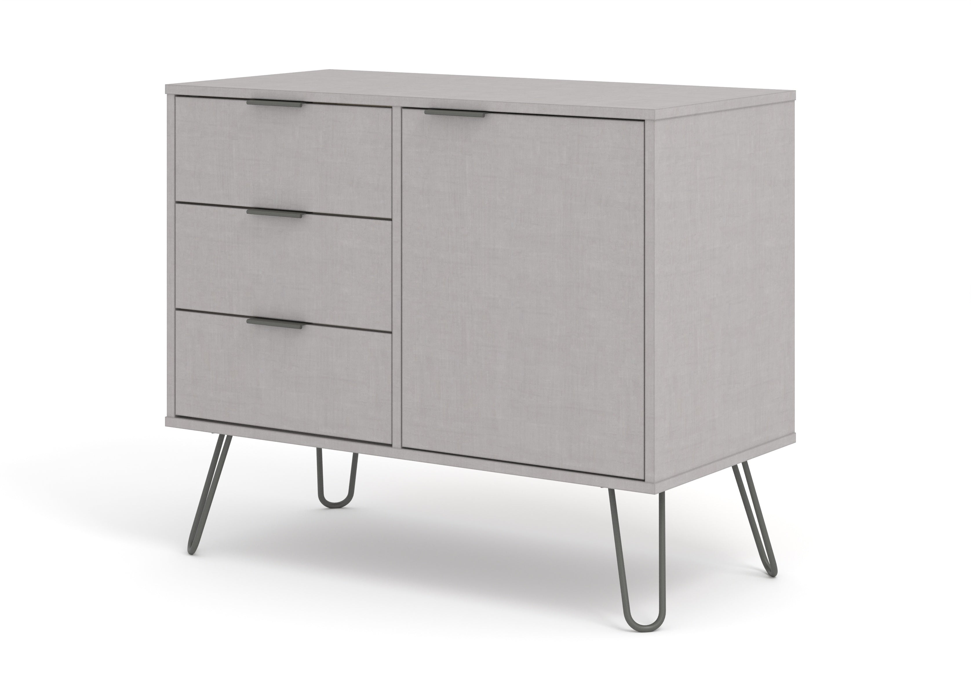 Our compact industrial styled small sideboard offers plenty of drawer and cupboard storage in an attractive wax finish with real metal.