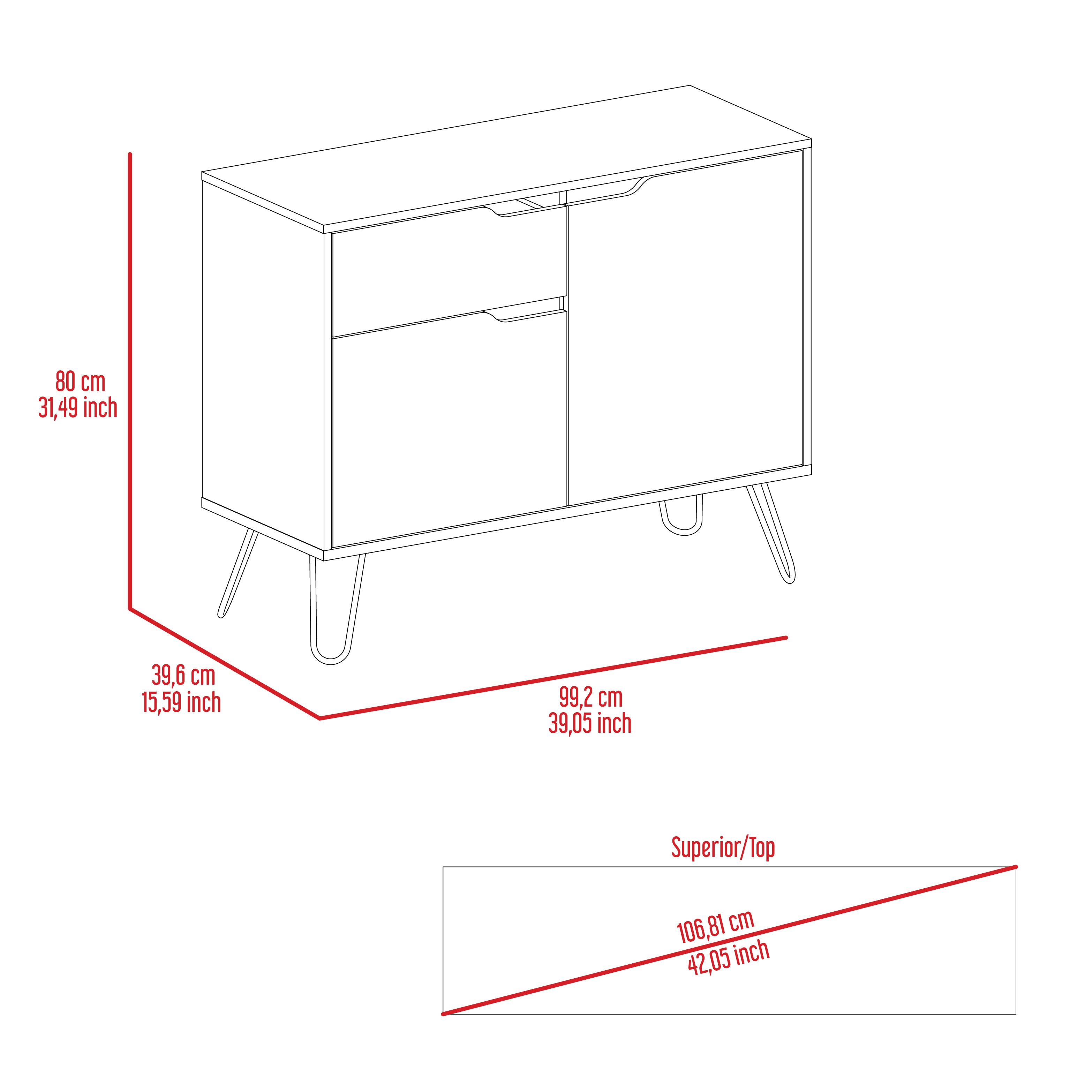 • Includes 1 drawer and 2 doors with fixed internal shelves