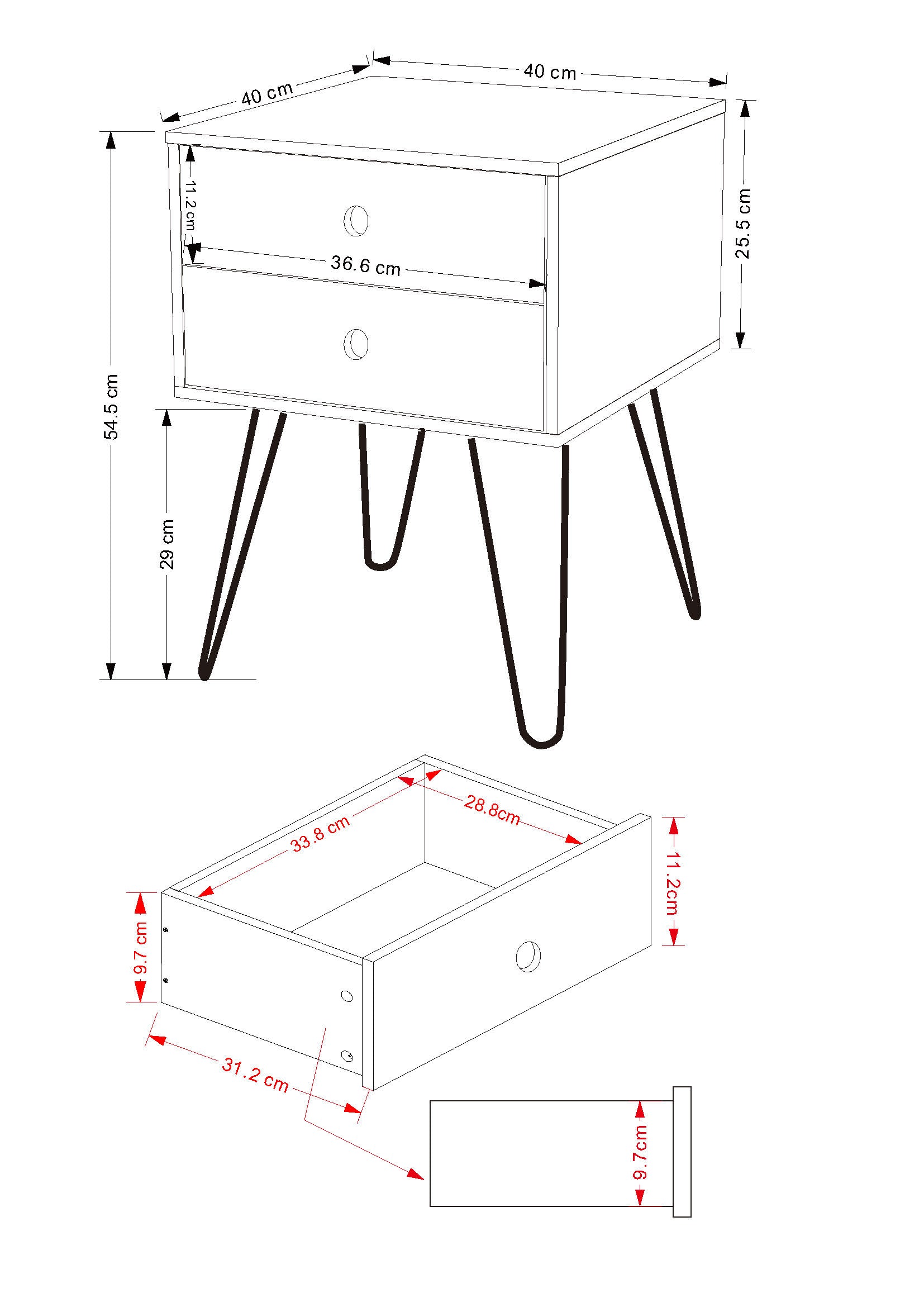 Painted - Telford Metal Leg 2 Drawer Bedside