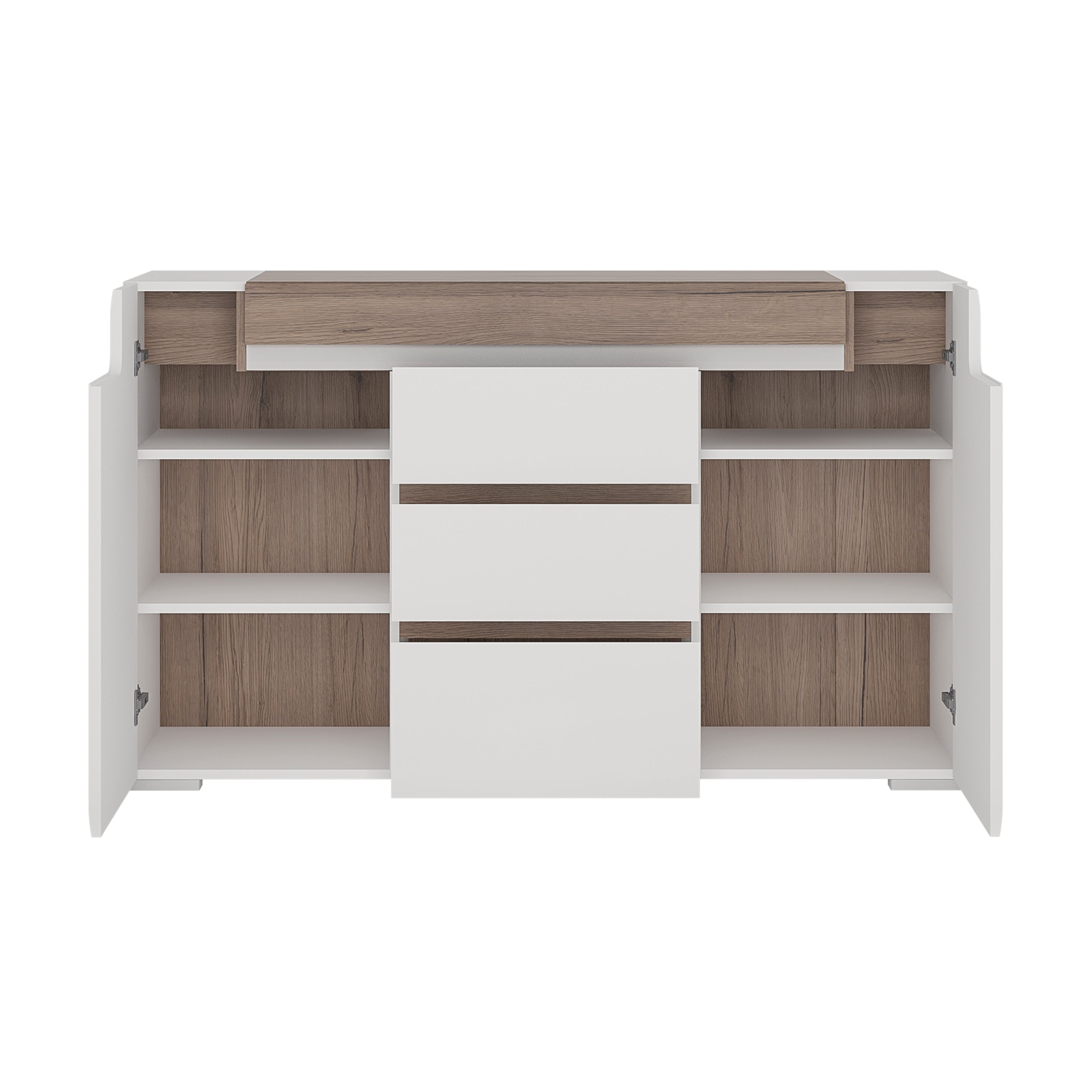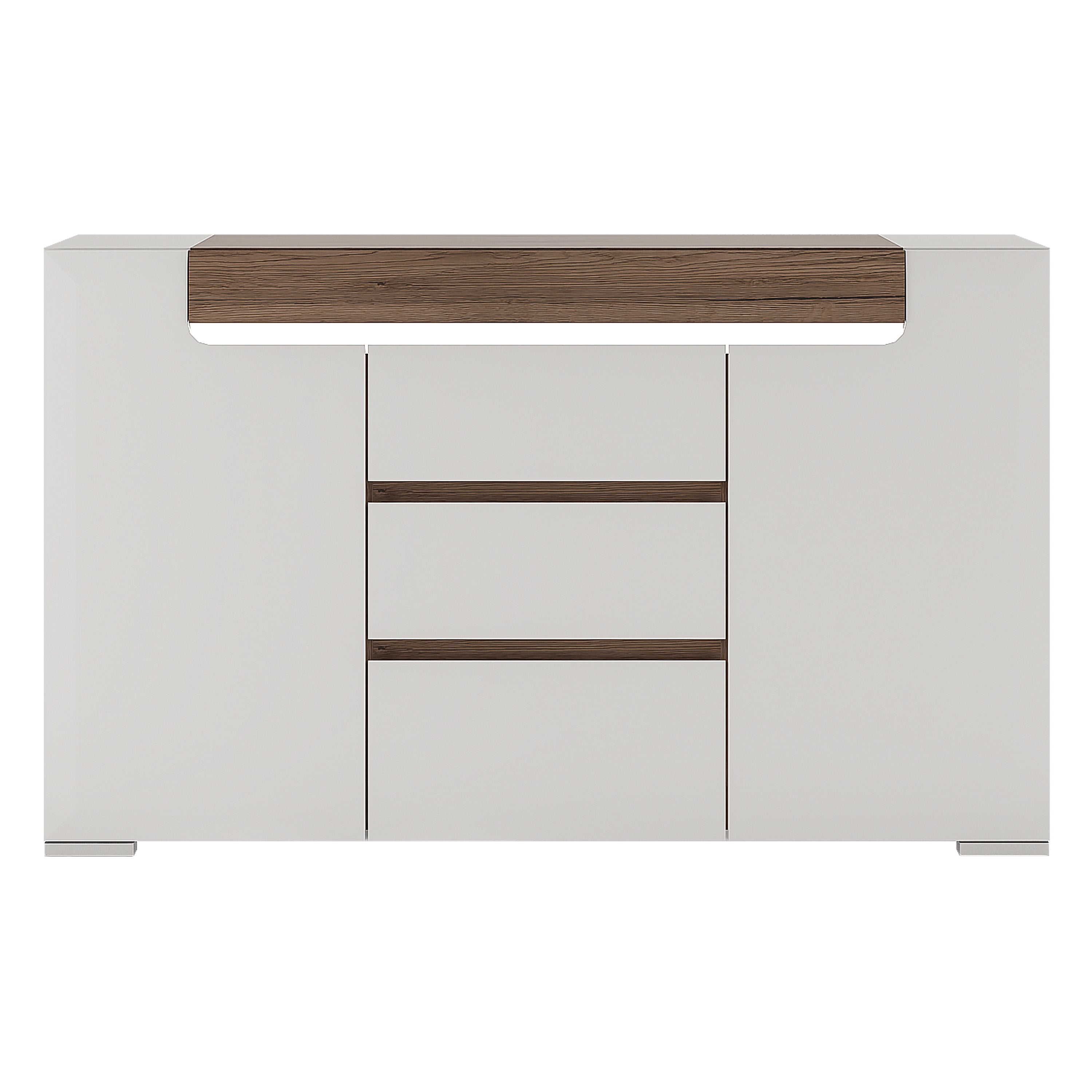 Toronto - 2 Door 3 Drawer Sideboard (inc. Plexi Lighting) In White and Oak