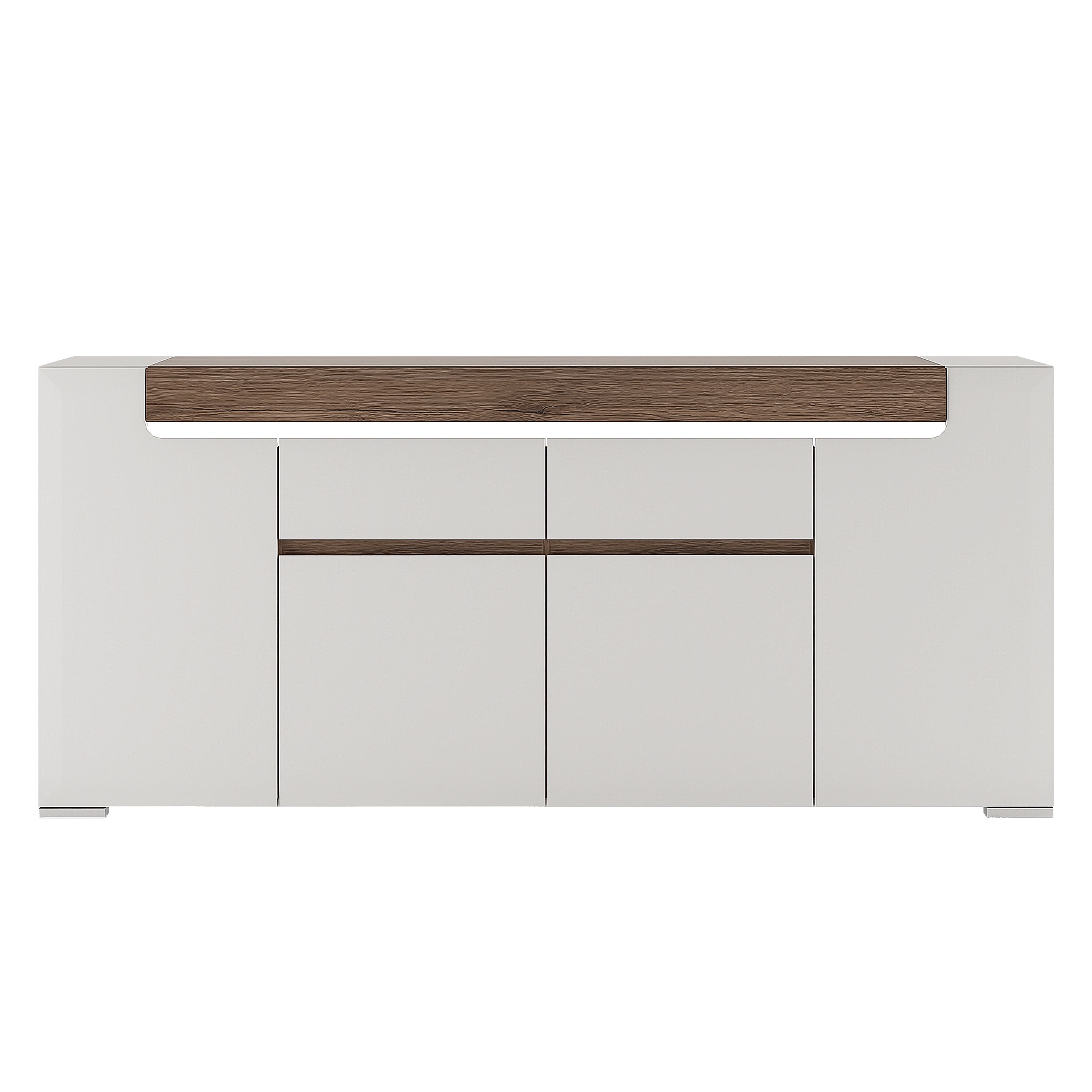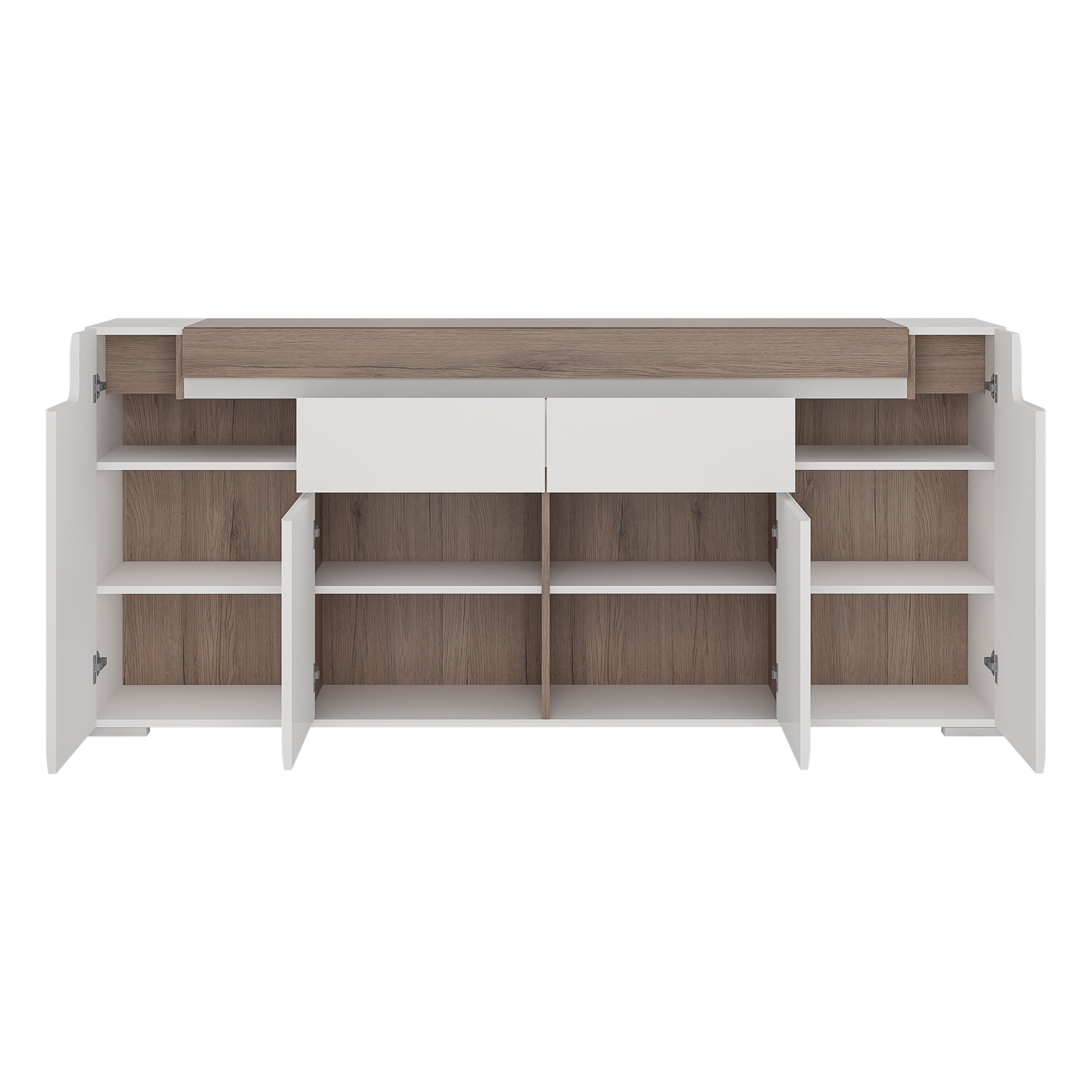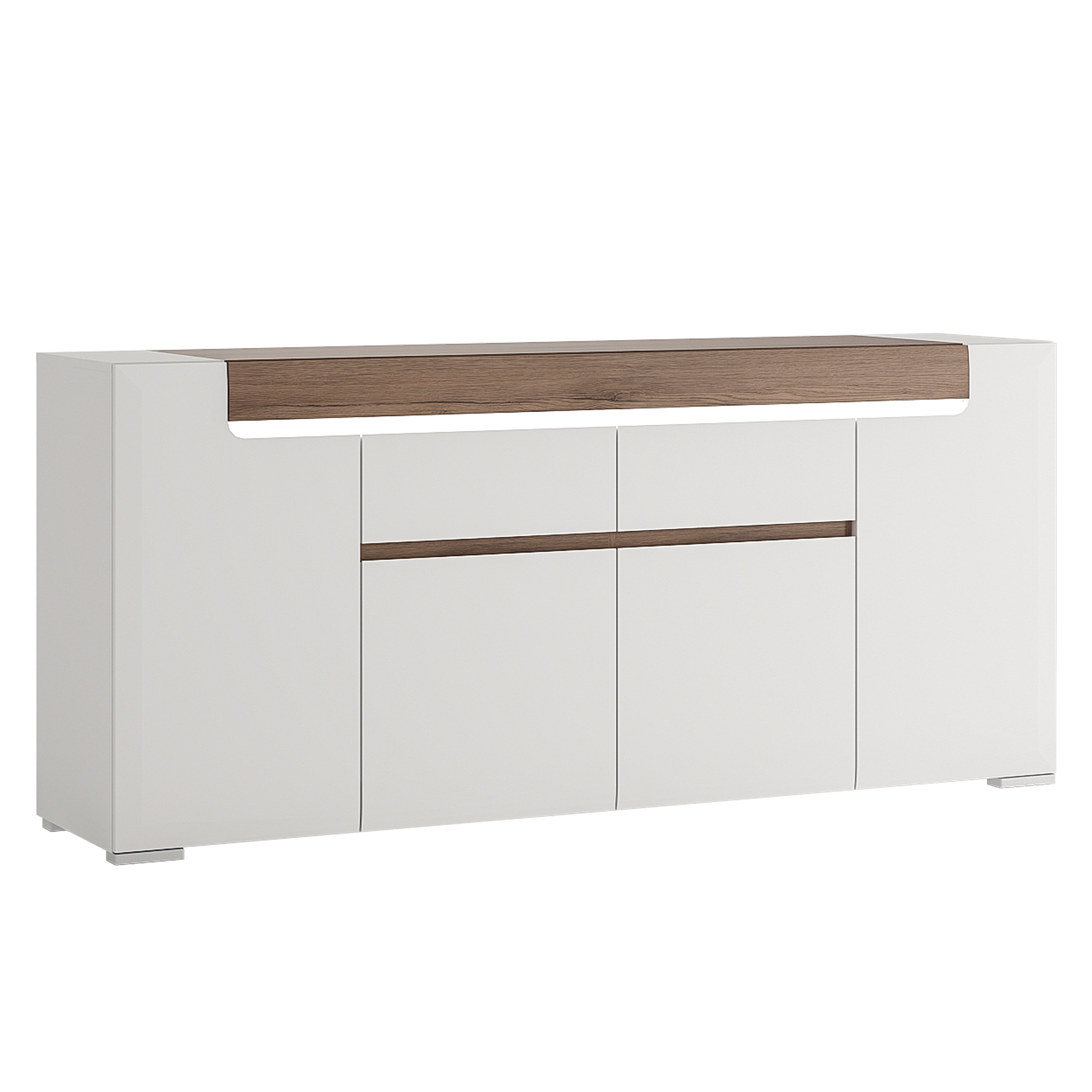 Toronto - Wide 4 Door 2 Drawer Sideboard (inc. Plexi Lighting) In White and Oak