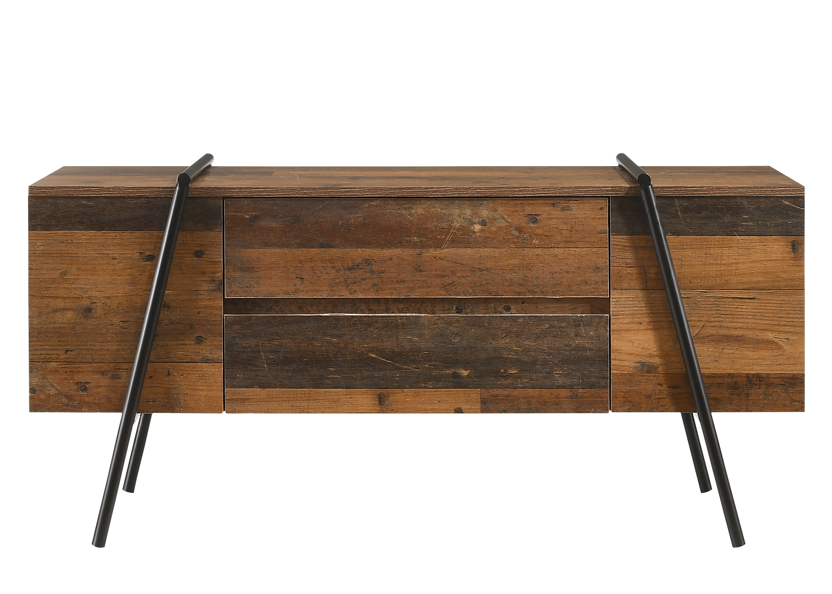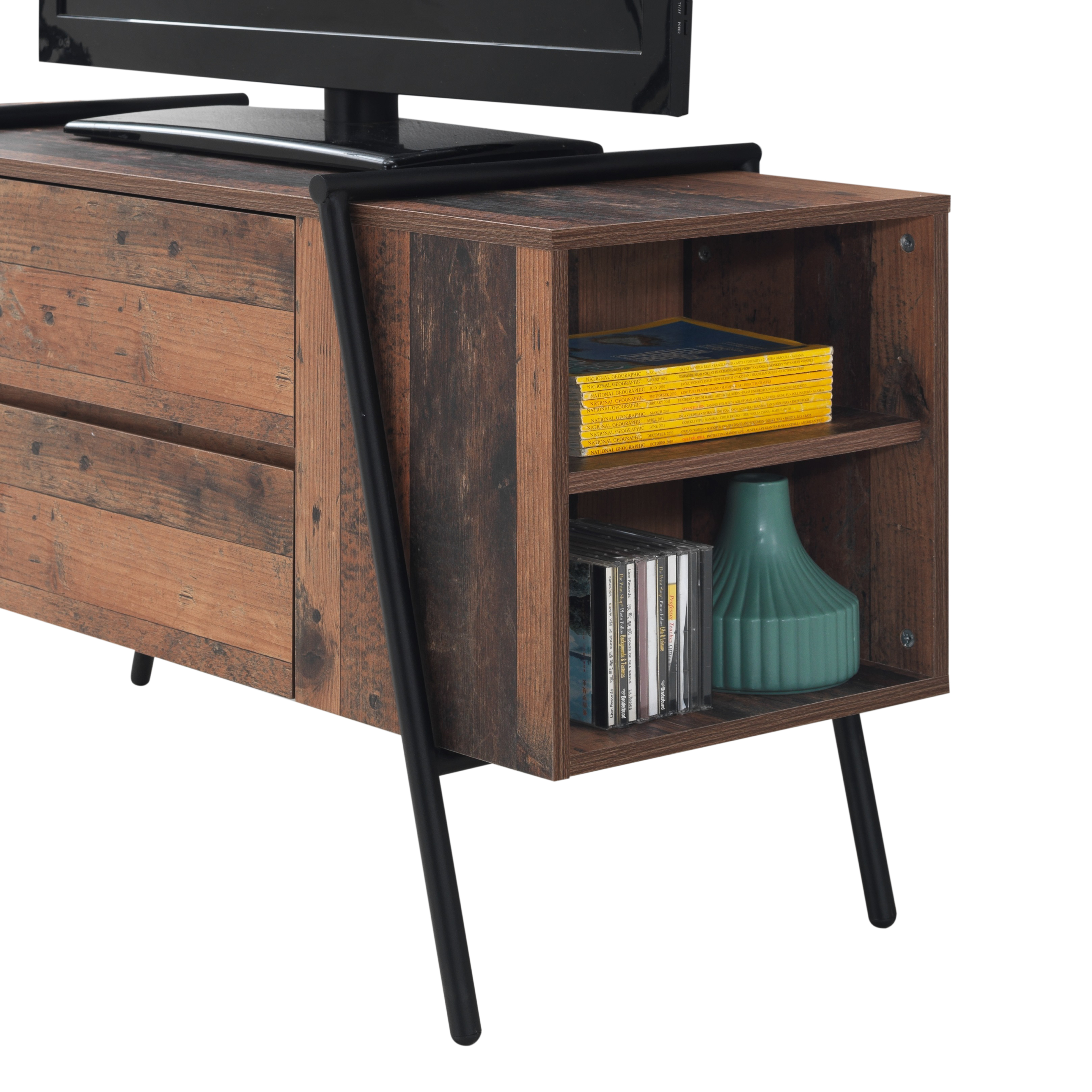 Bring a unique blend of rustic charm and modern practicality to your living space with this TV Cabinet featuring 2 drawers and 4 open shelves. Designed to be both a statement piece and a functional storage solution, it offers ample room for all your entertainment essentials while enhancing your home with its distinctive character.