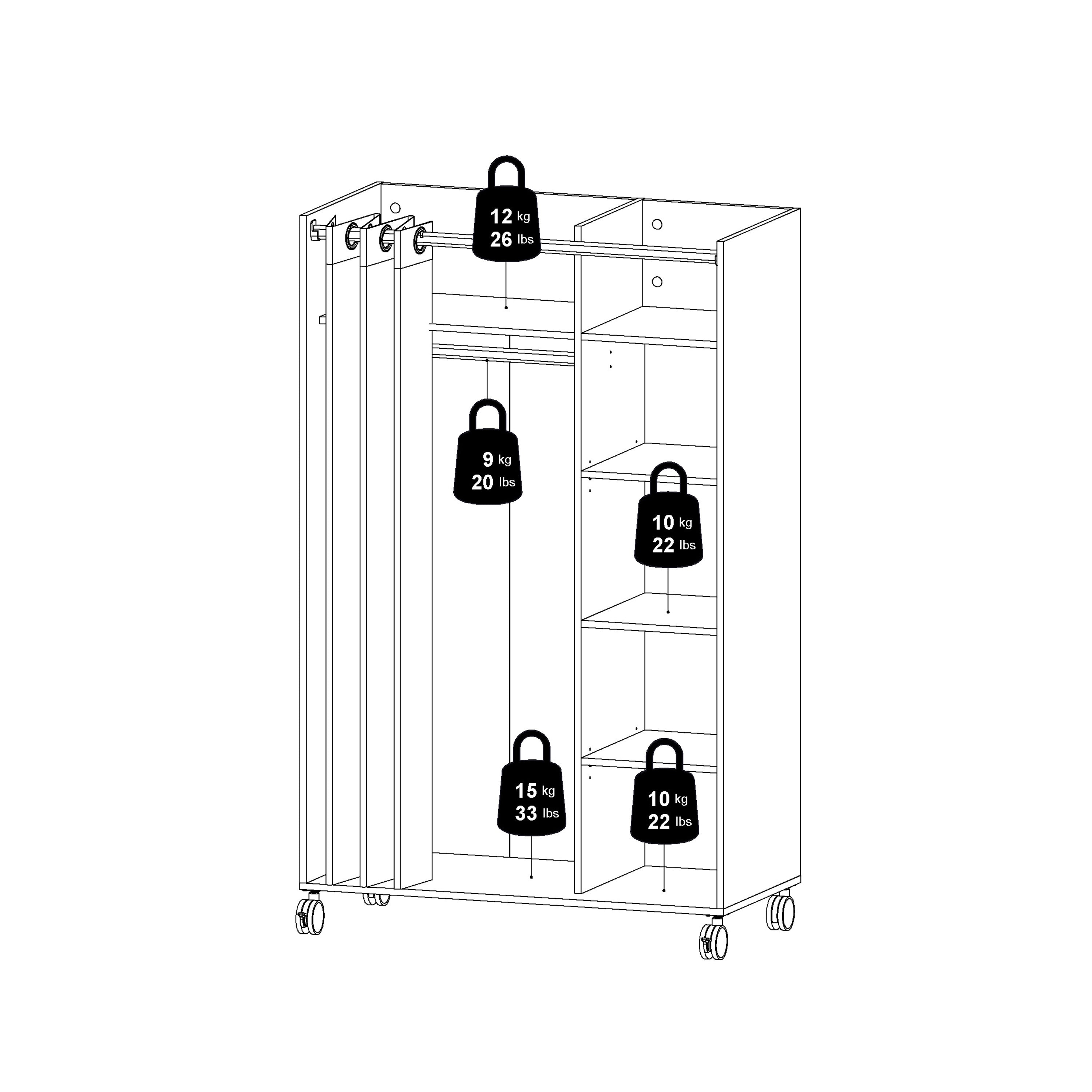 Organise your home effortlessly with the Uppsala Open Mobile Wardrobe Unit, designed to maximise storage with a hanging rail and multiple shelves. Its mobility on wheels ensures flexible placement wherever you need it most.