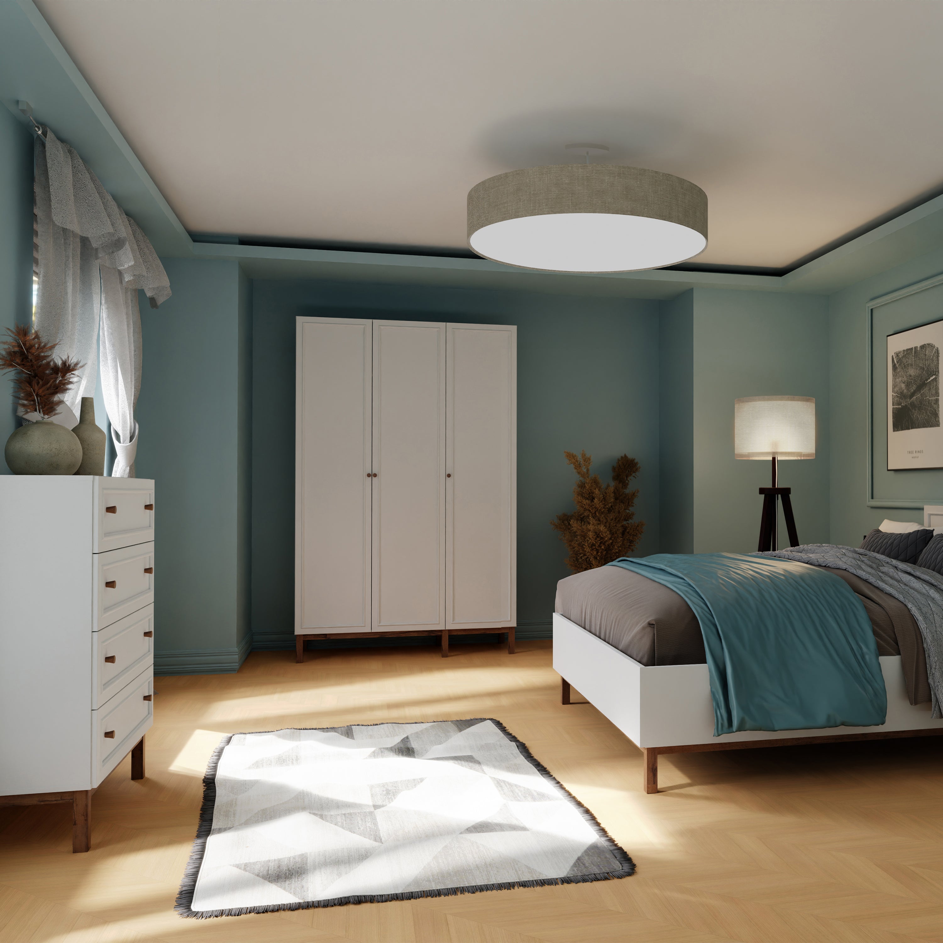 Enhance your home with the Wensley 4 Drawer Chest, combining modern design with practical storage in a stylish light grey and oak finish.