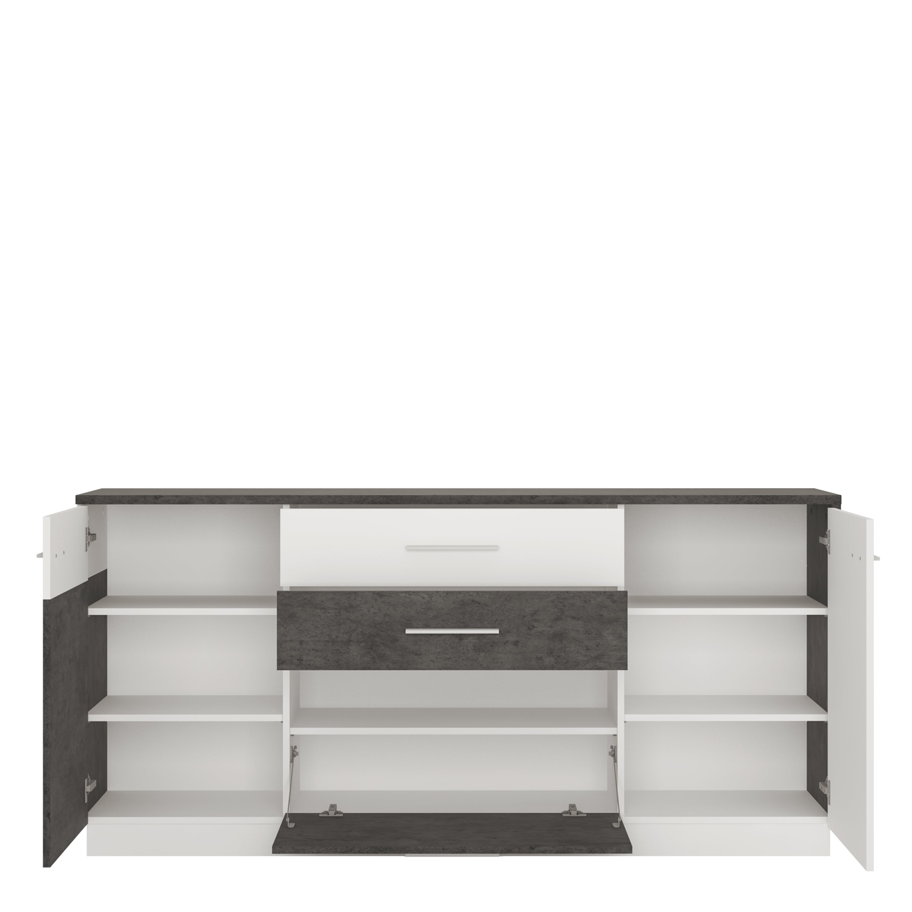 Maximise your storage with the Zingaro 2 Door 2 Drawer 1 Compartment Sideboard, designed to offer extra space and style for your living area. Its extended length includes an additional cupboard, perfect for organising your essentials neatly.